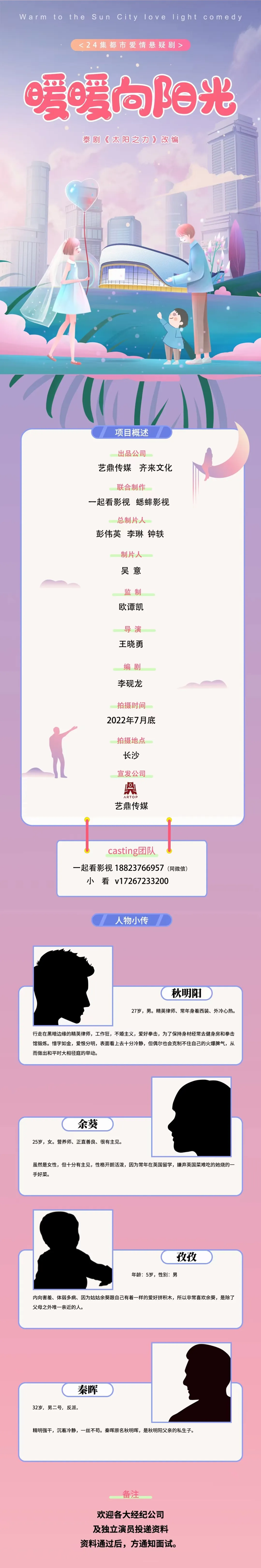 欢迎各大经纪公司及独立演员投递资料,资料通过后,方通知面试。