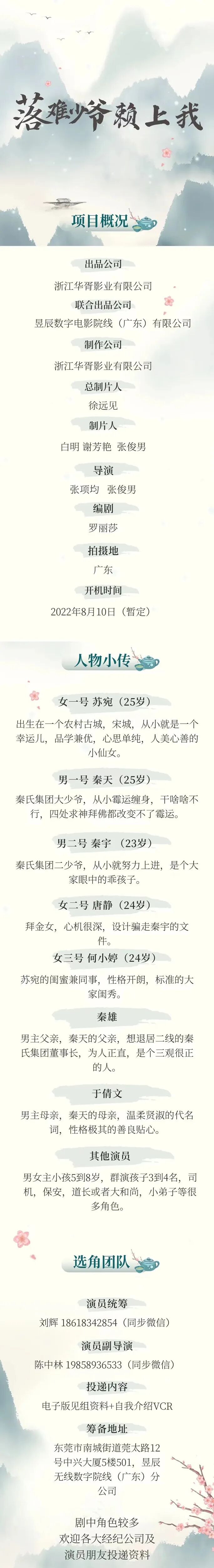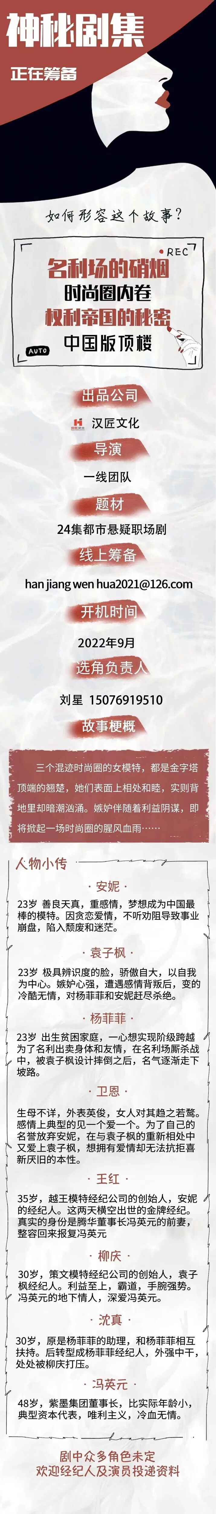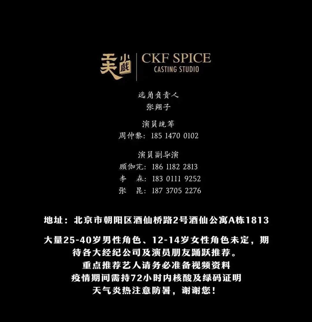 剧中众多角色未定,欢迎经纪人及演员投递资料