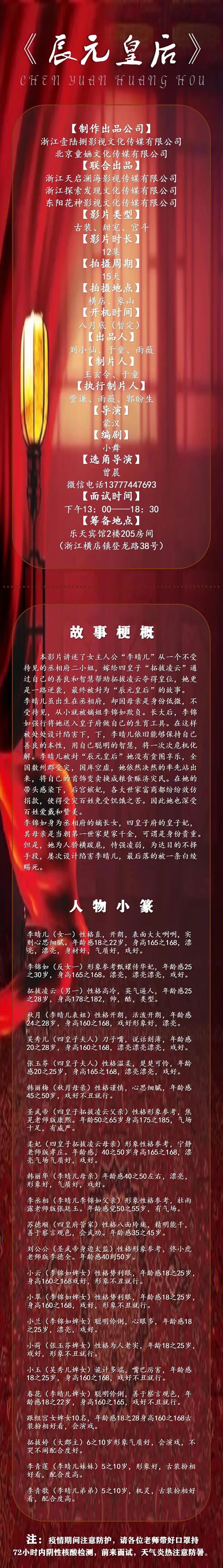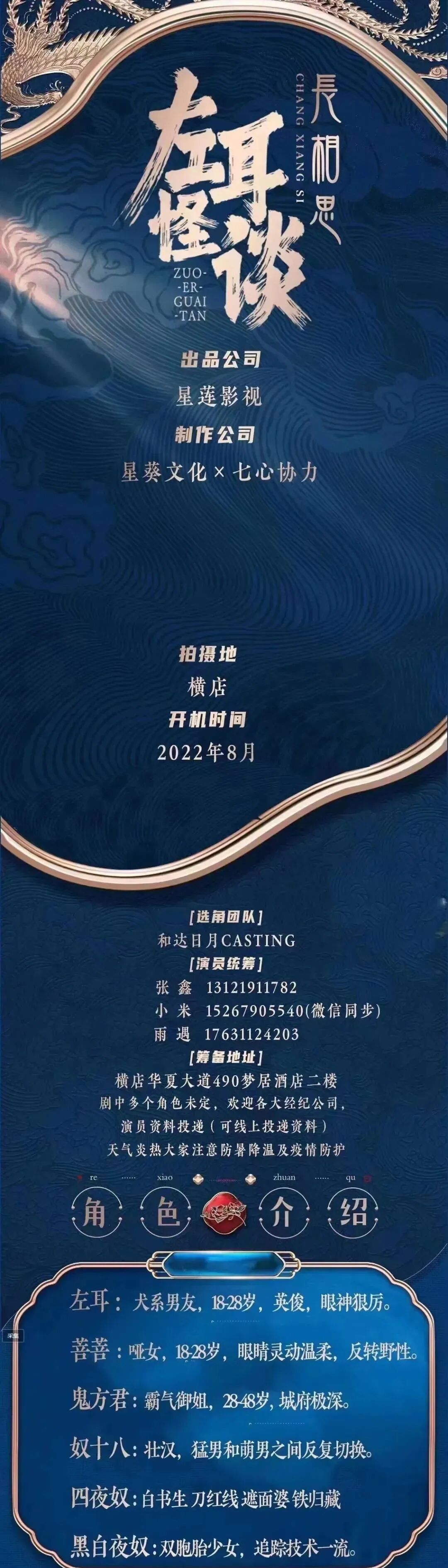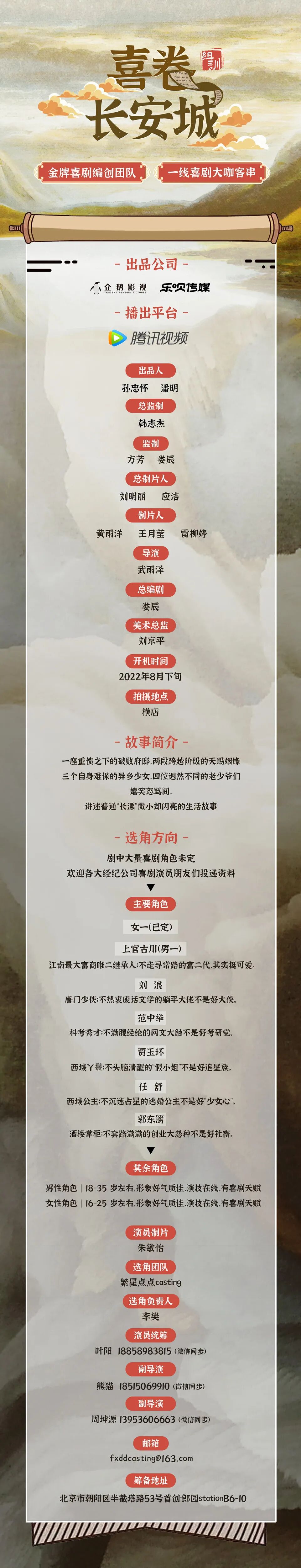 剧中众多角色未定,欢迎经纪人及演员投递资料