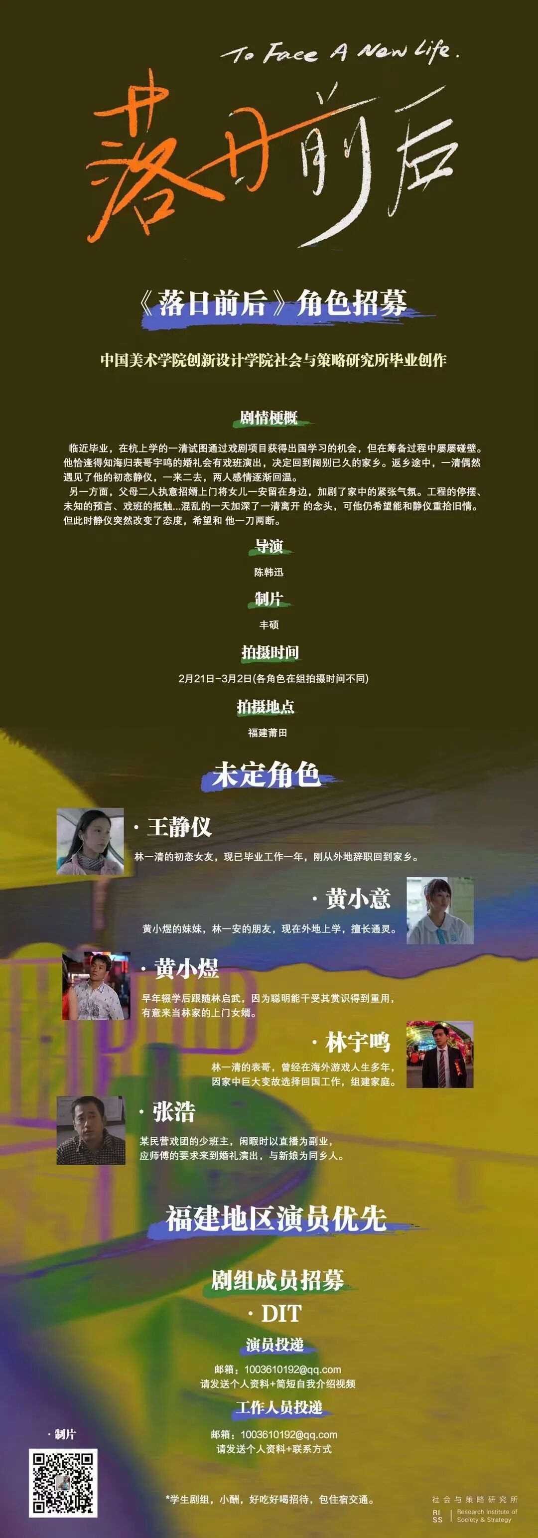 本栏目发布组讯由小编采集与业界共享,组讯如有变化请以实际情况为准。如果遇到剧组收费情况,请谨慎对待并私信官微@戏客Seeker,我们会公示问题组讯并及时处理。谢谢。