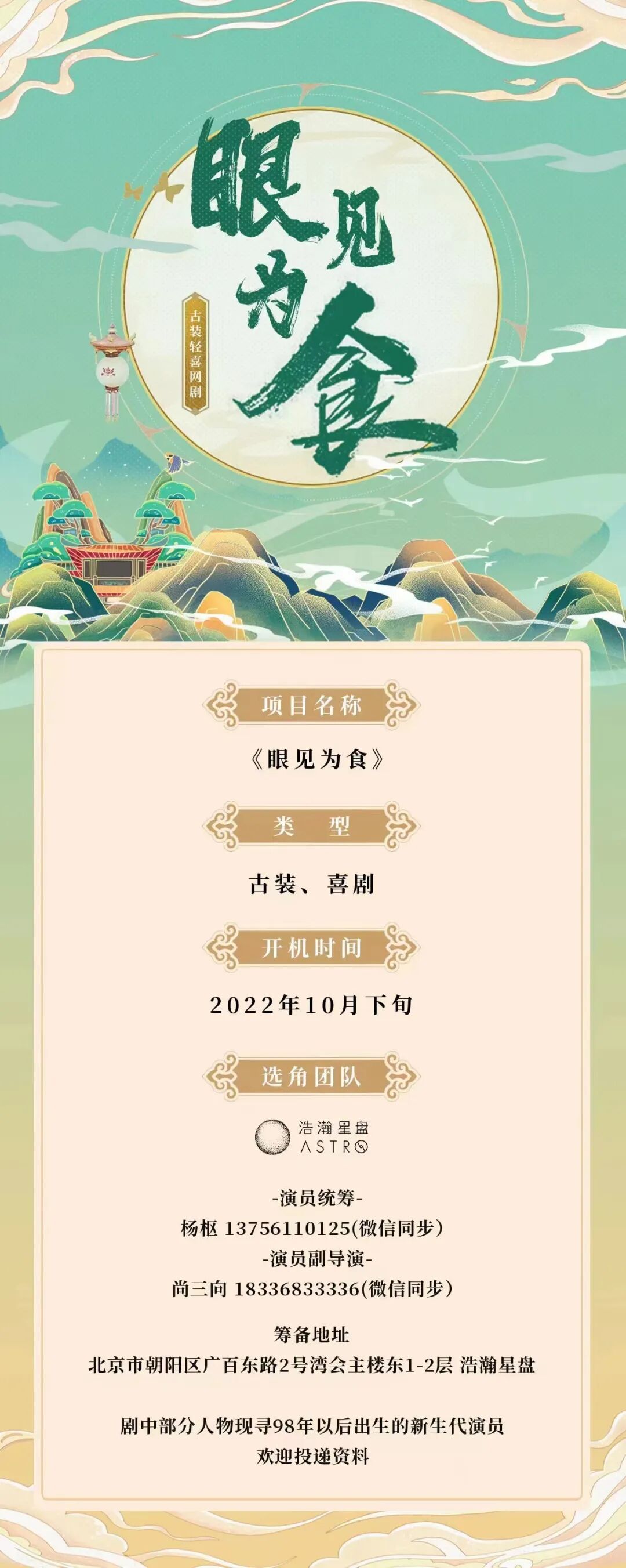 选角负责人:黑俊瞳 15810386091(微信同步)
