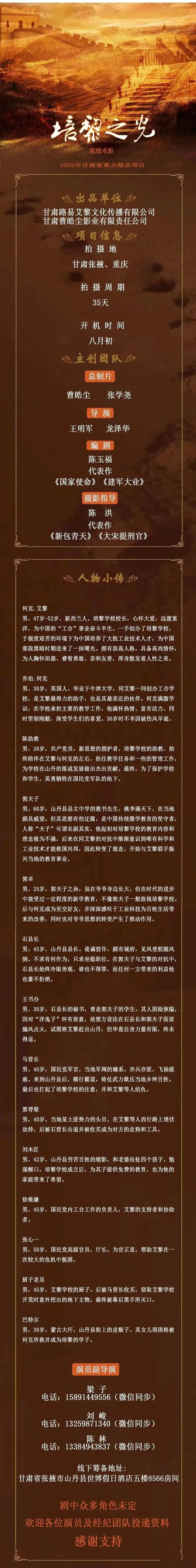 出品公司:甘肃路易艾黎文化传播有限公司、甘肃曹皓尘影业有限责任公司
