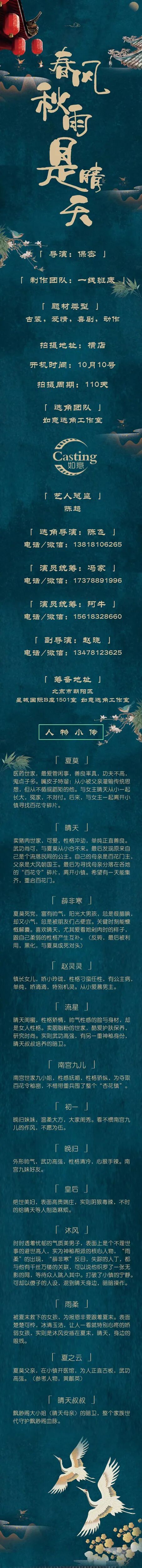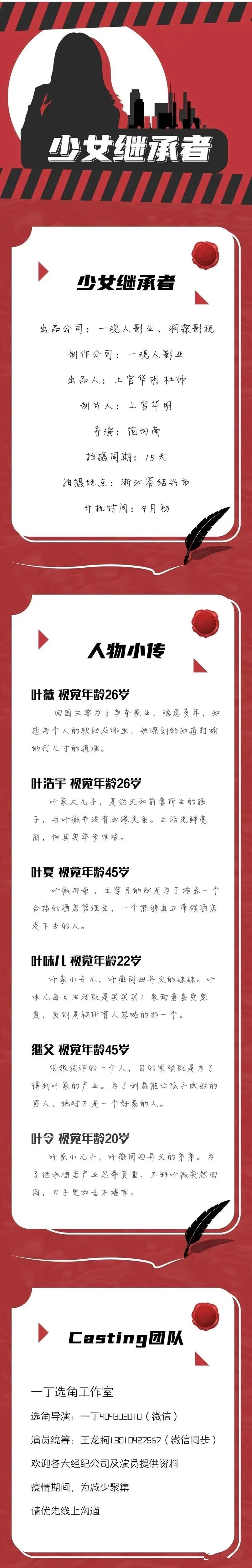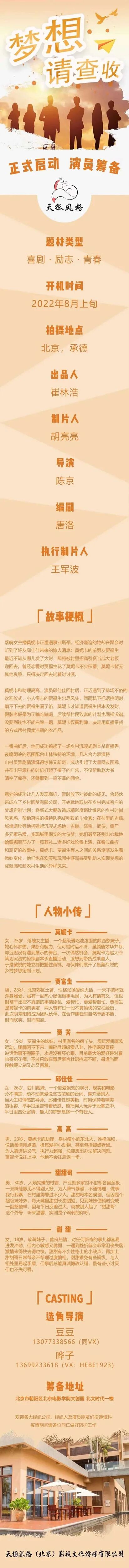 筹备地址:北京市朝阳区星城国际B座1501室如意选角工作室。