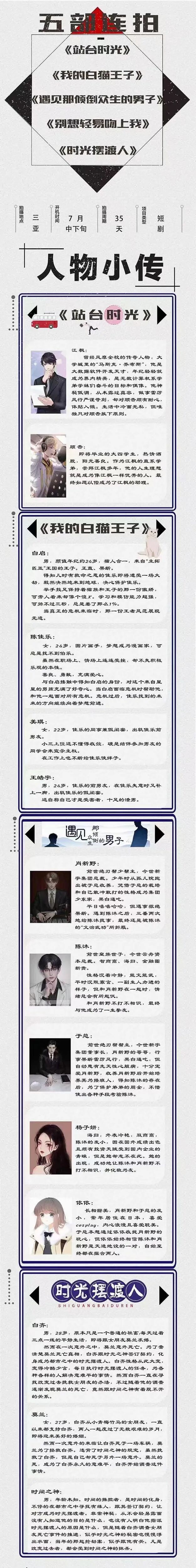 《站台时光》、《我的白猫王子》、《遇见那倾倒众生的男子》、《别想轻易吻上我》、《时光摆渡人》五部连拍