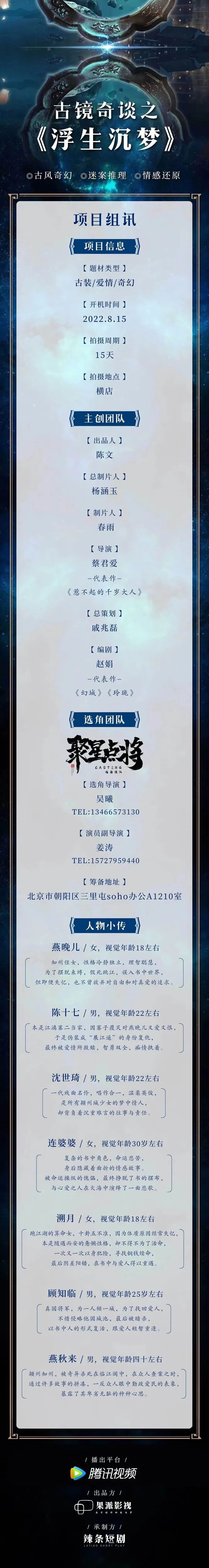 本栏目发布组讯由小编采集与业界共享,组讯如有变化请以实际情况为准。如果遇到剧组收费情况,请谨慎对待并私信官微@戏客Seeker,我们会公示问题组讯并及时处理。谢谢。