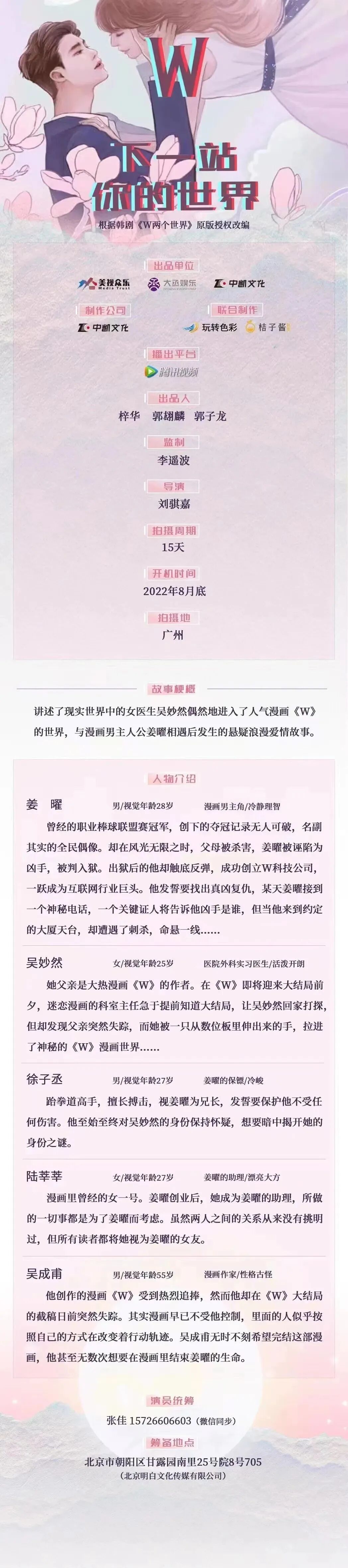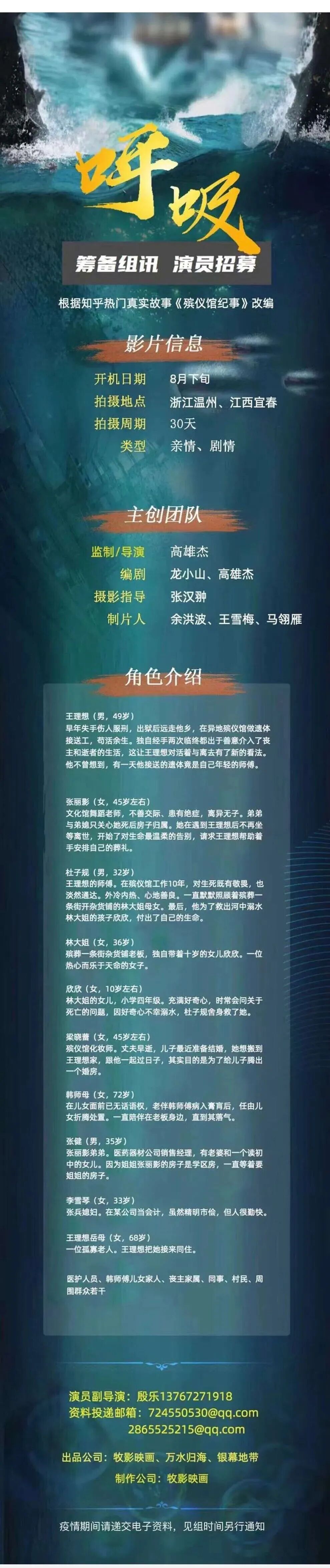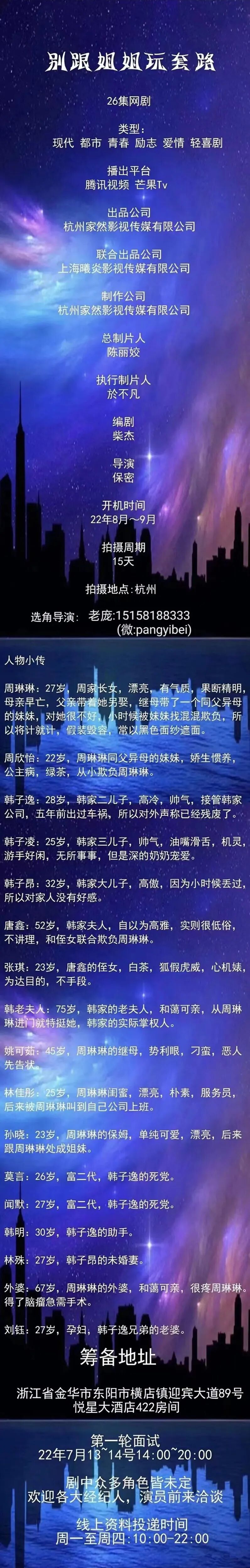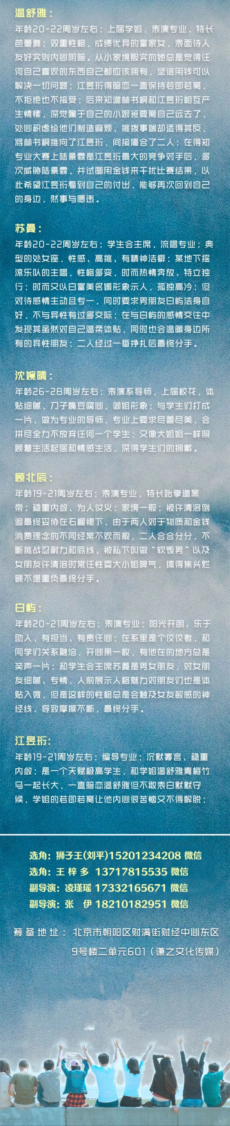 选角联系人:王梓多 13717815535(微信)