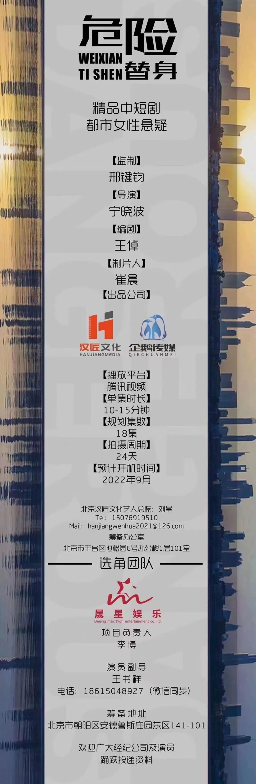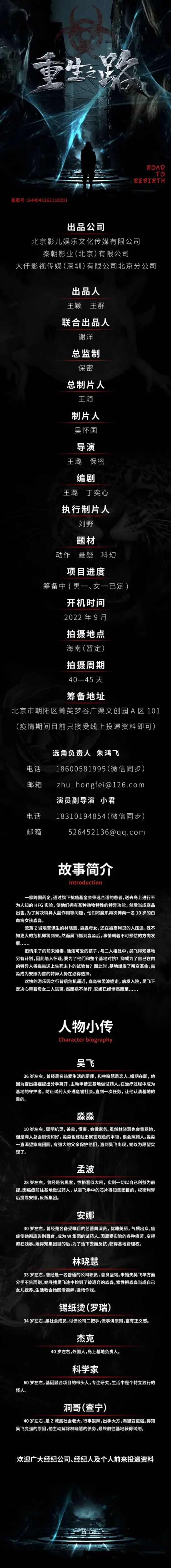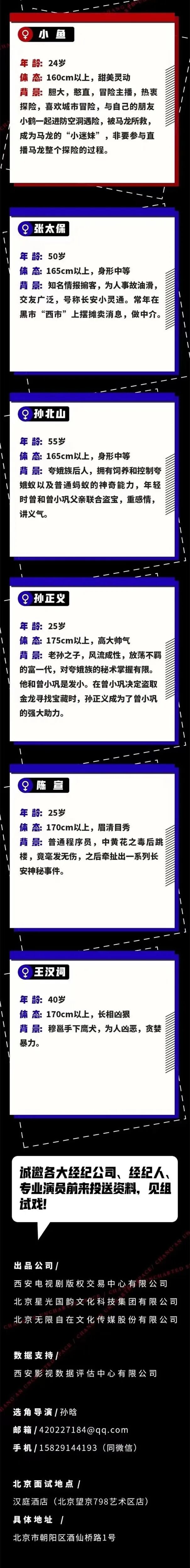 选角负责人:朱鸿飞 18600581995(微信同步)