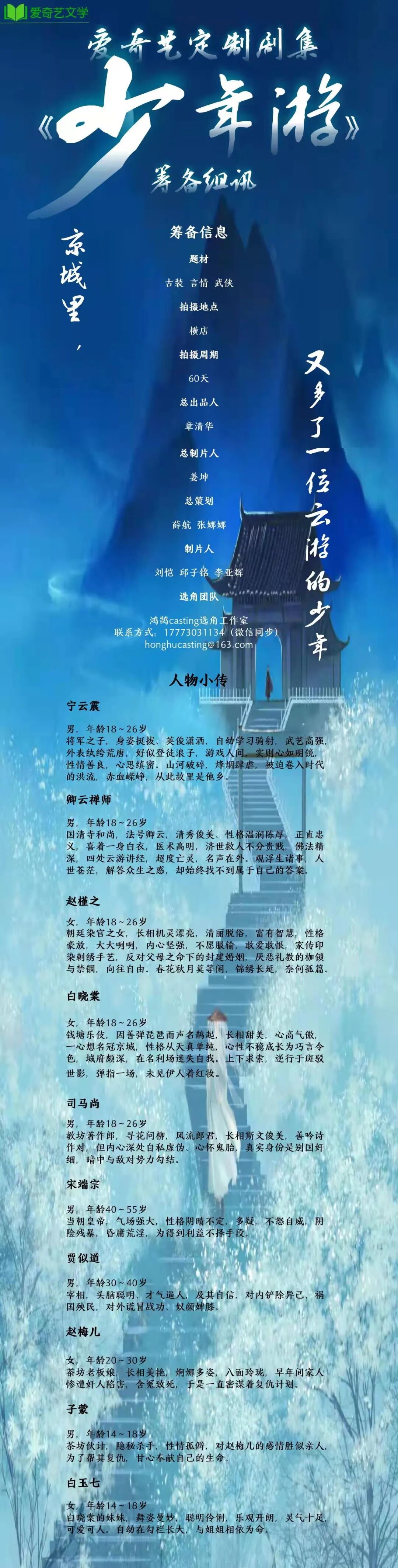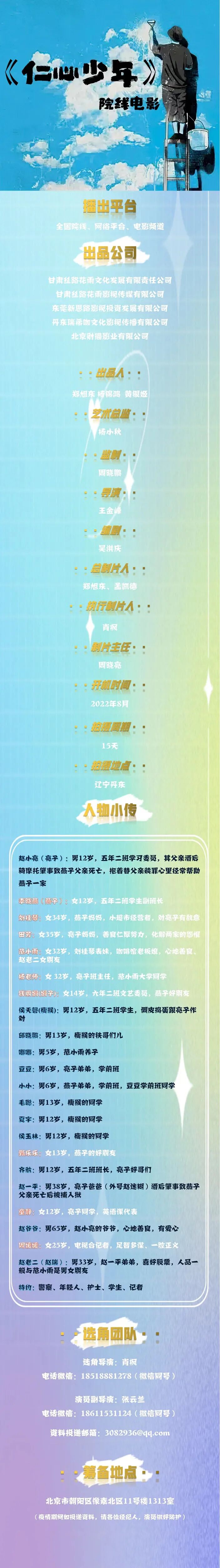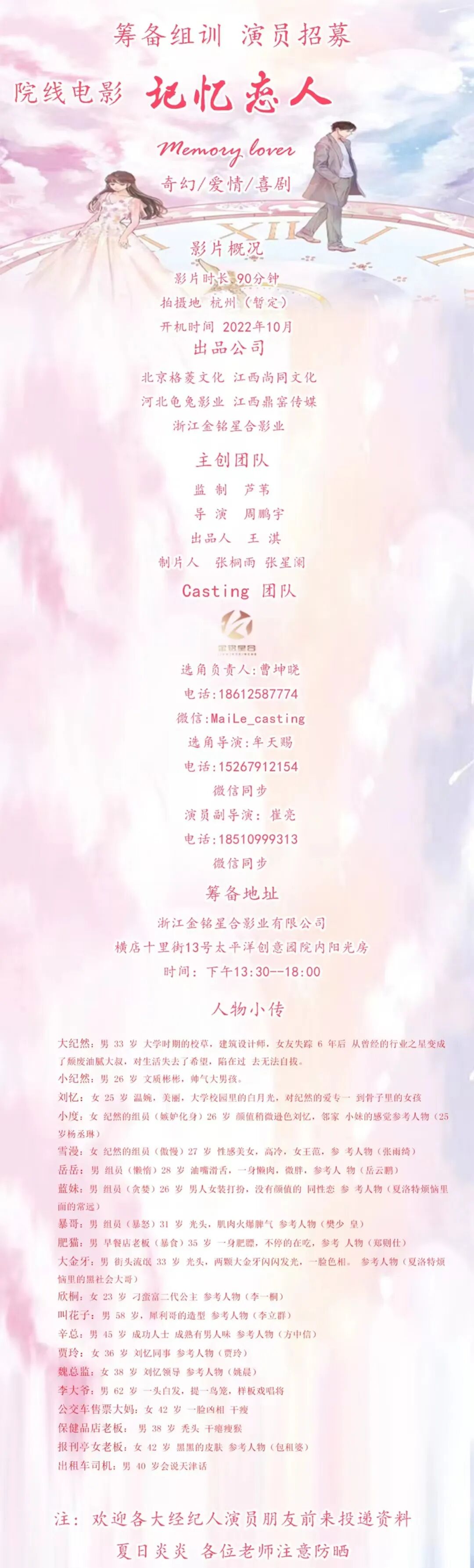 选角负责人:朱鸿飞 18600581995(微信同步)