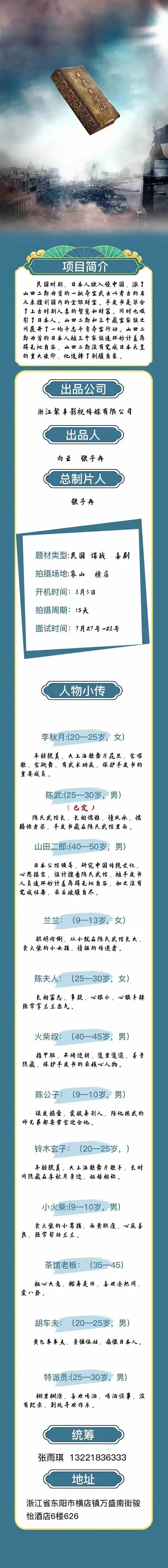 演员统筹:叶子15658055313(微信同步)