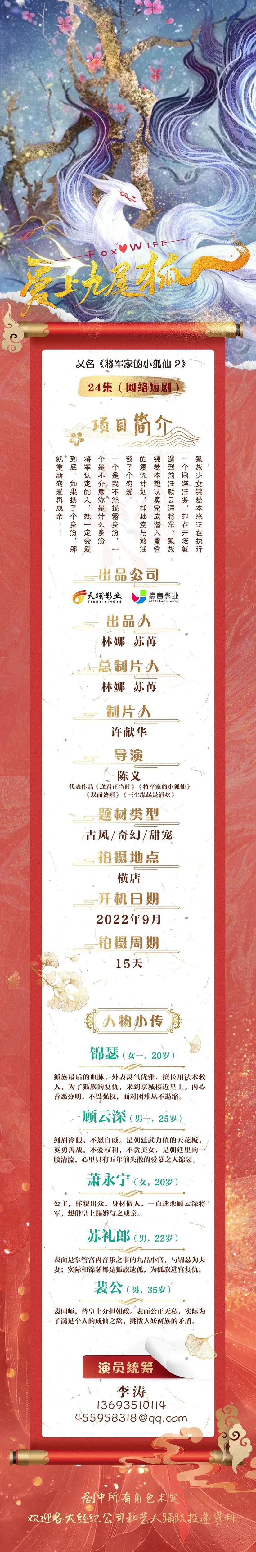 奇幻甜宠短剧《爱上九尾狐》【更新开机时间】