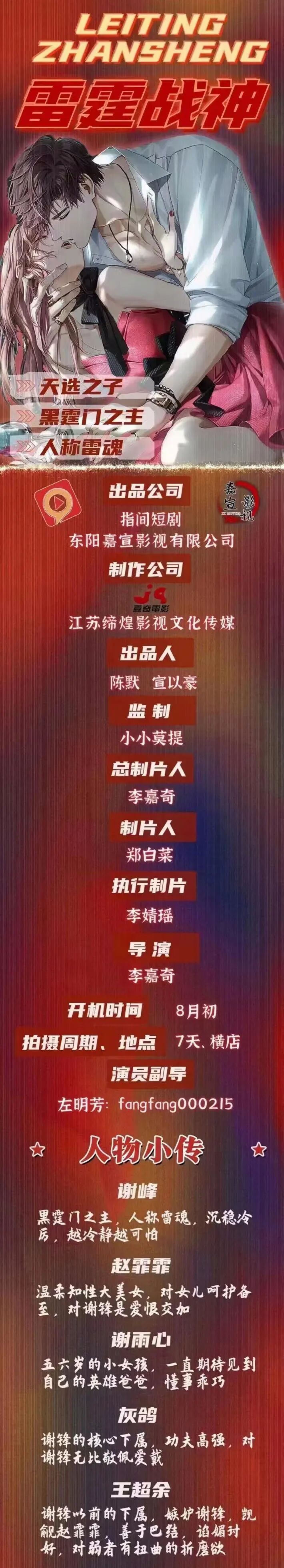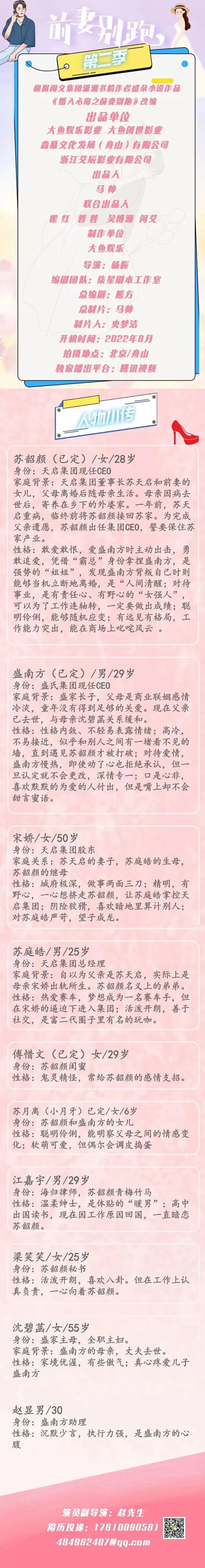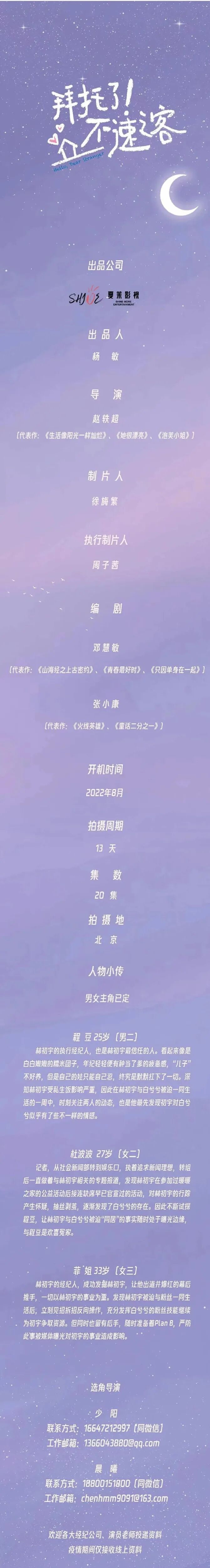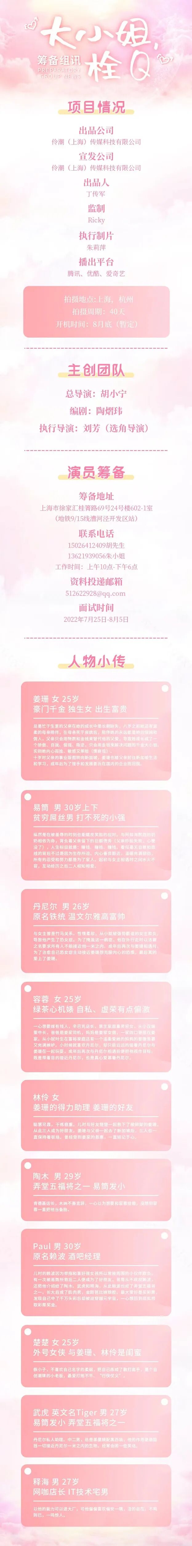有众多角色待定,欢迎各大经纪公司、经纪人、艺人投递资料。
