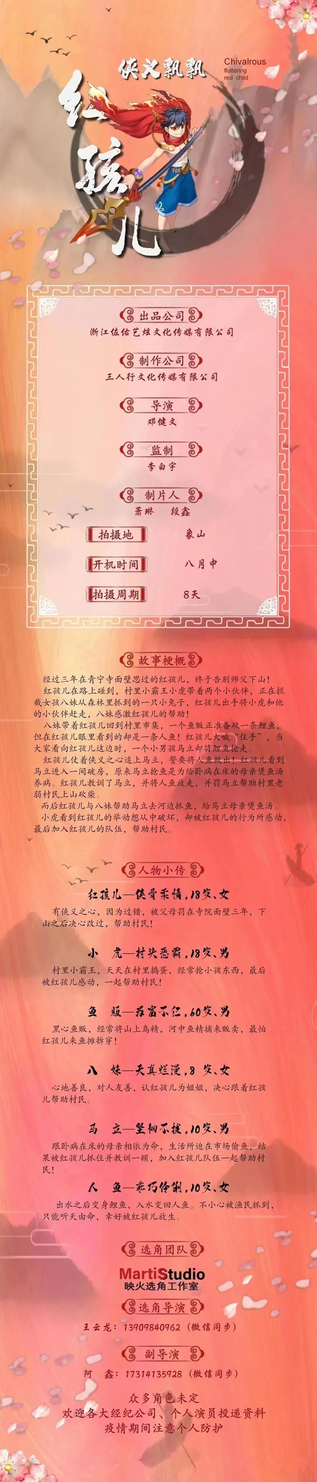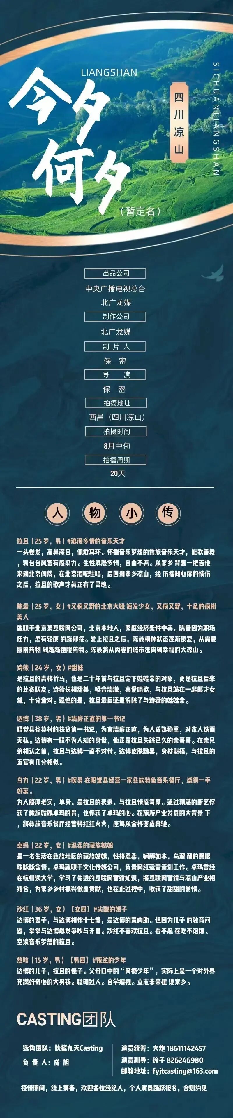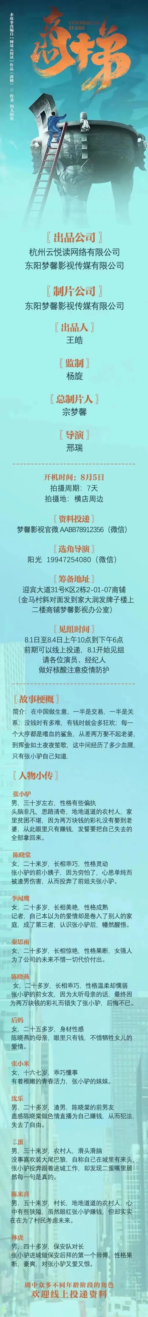 众多角色未定,欢迎各大经纪公司、个人演员投递资料,疫情期间注意个人防护。