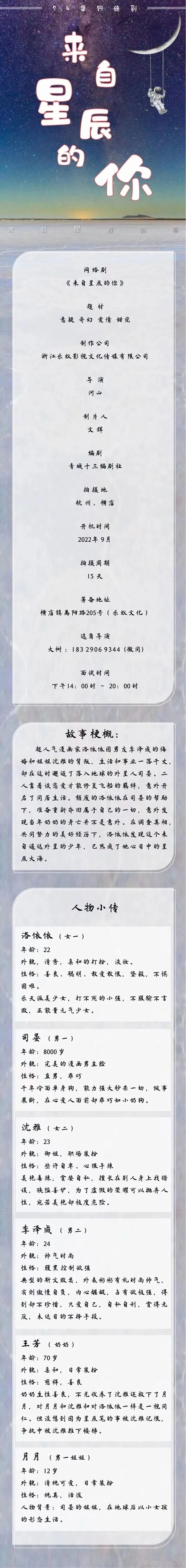 疫情期间,线上筹备,欢迎各位经纪人,个人演员踊跃报名,合则约见