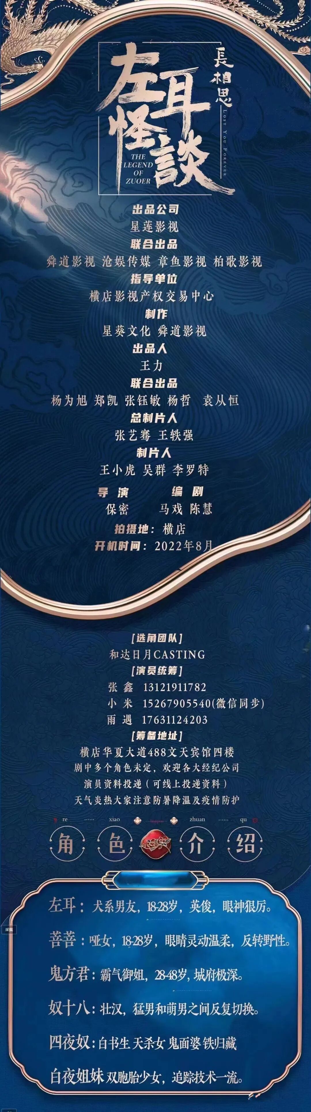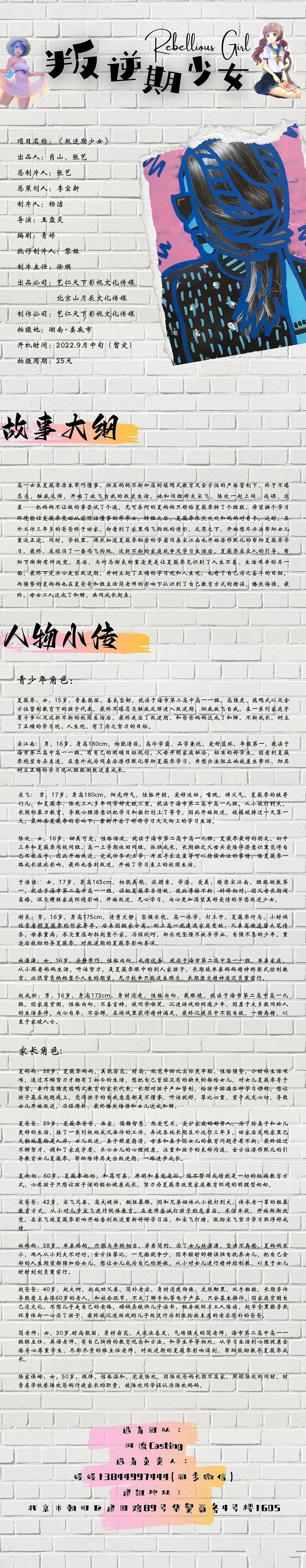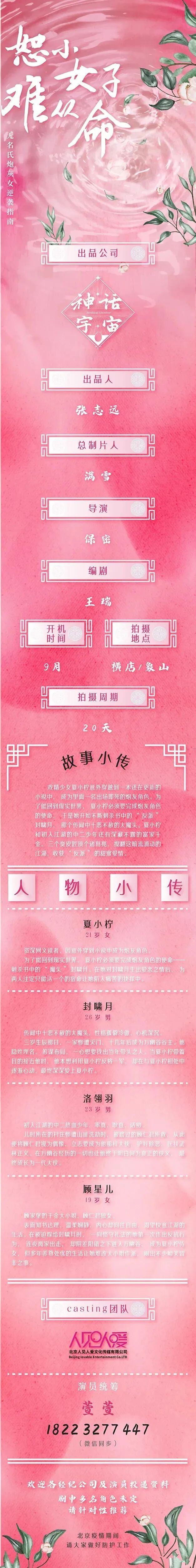 选角负责人:媛媛 13844997444(微信同步)