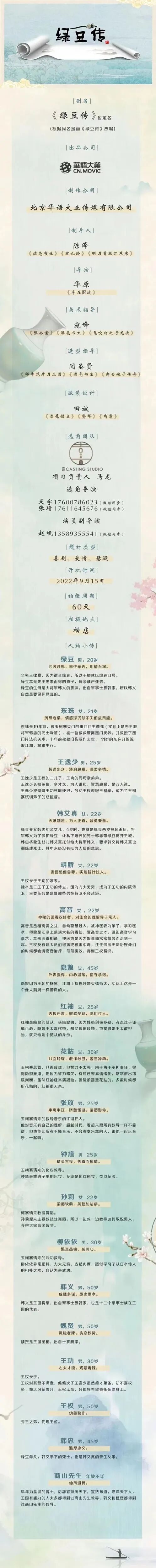 2、爱情喜剧《绿豆传》暂定名