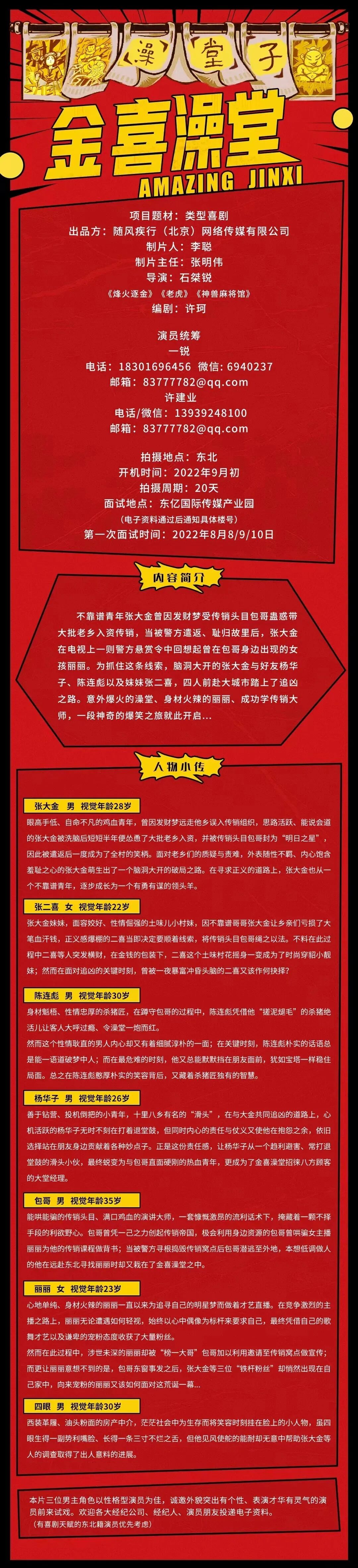 选角导演:殷殷 17710271115(微信同)