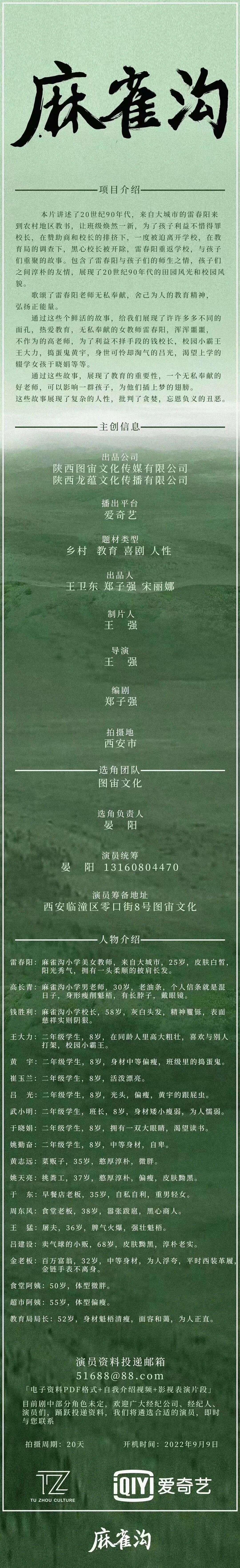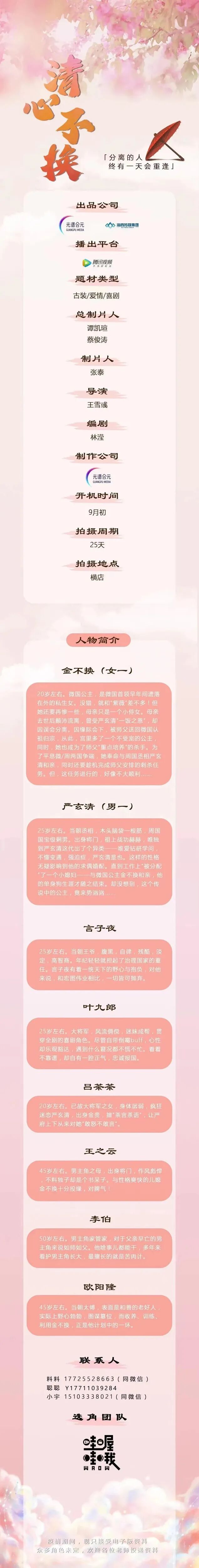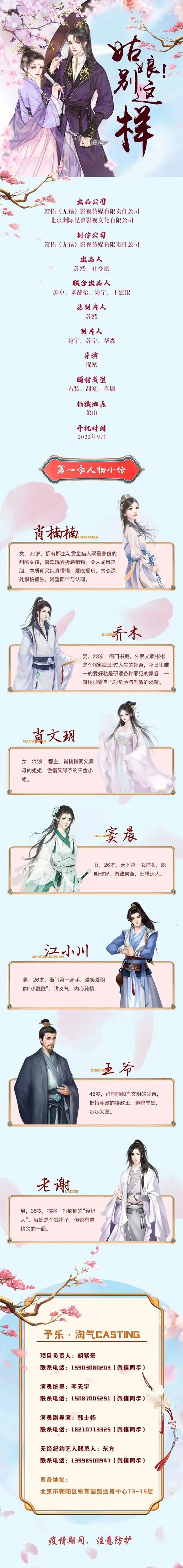 目前剧中部分角色未定,欢迎广大经纪公司、经纪人、演员们,踊跃投递资料,我们将遴选合适的演员,即时与您联系