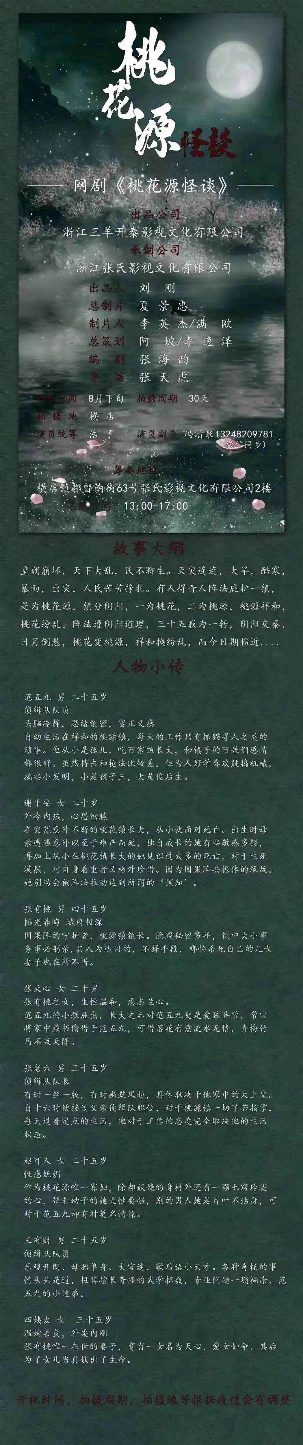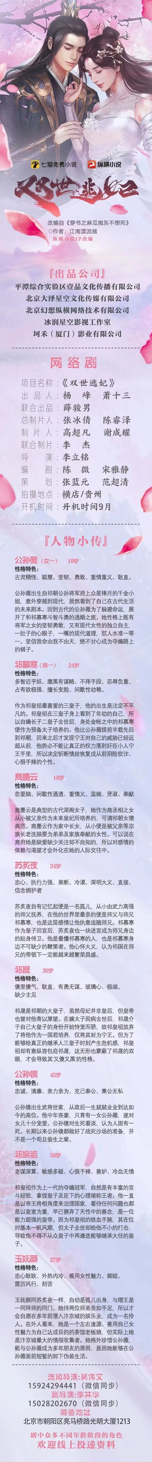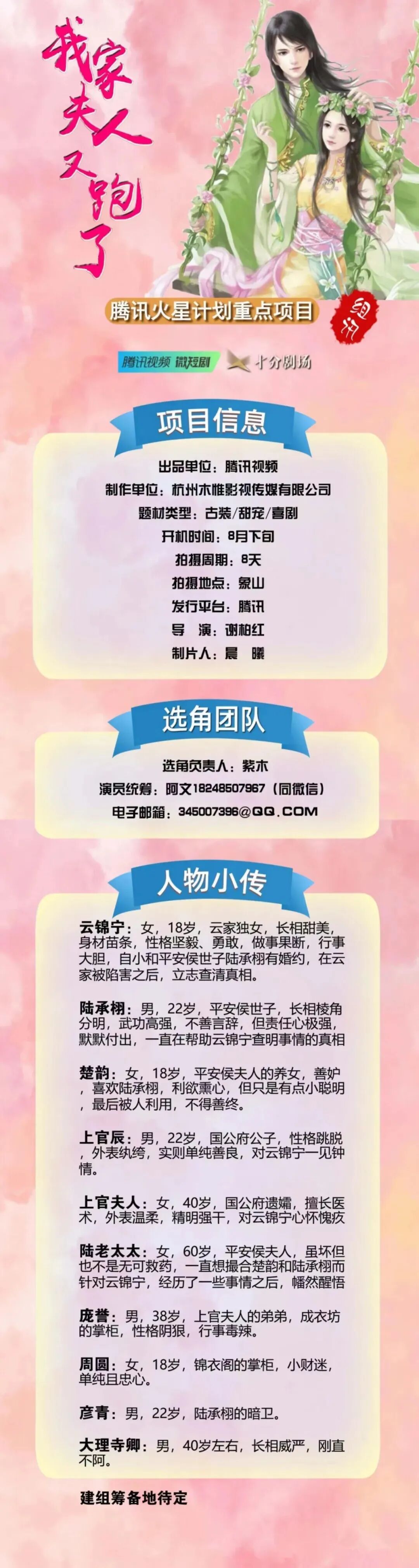 目前剧中部分角色未定,欢迎广大经纪公司、经纪人、演员们,踊跃投递资料,我们将遴选合适的演员,即时与您联系