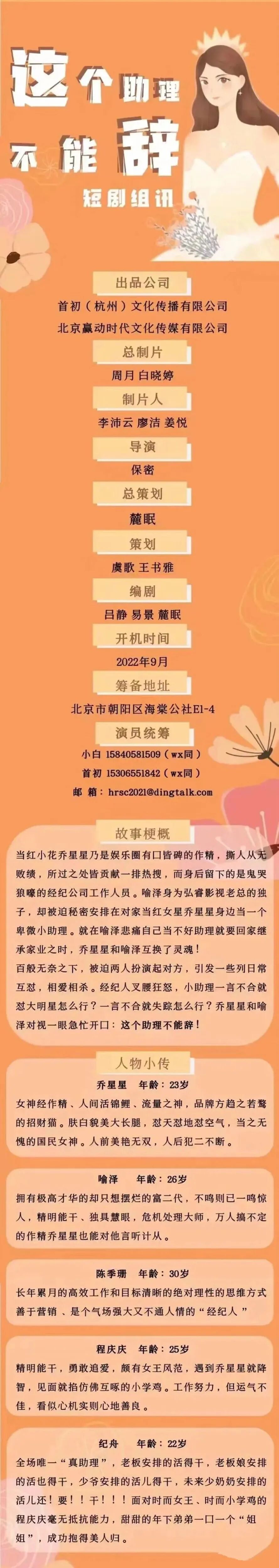 演员统筹:首初 15306551842(微信同步)
