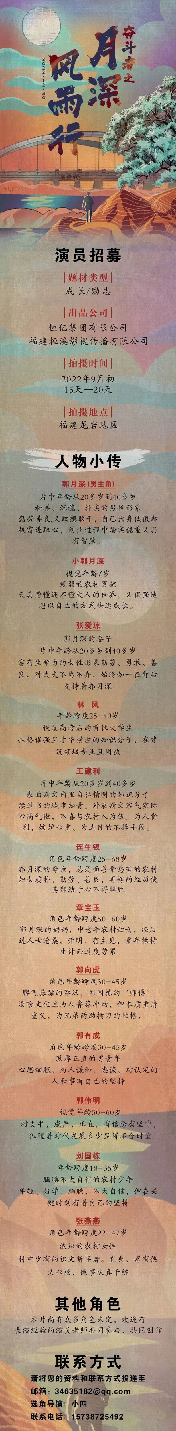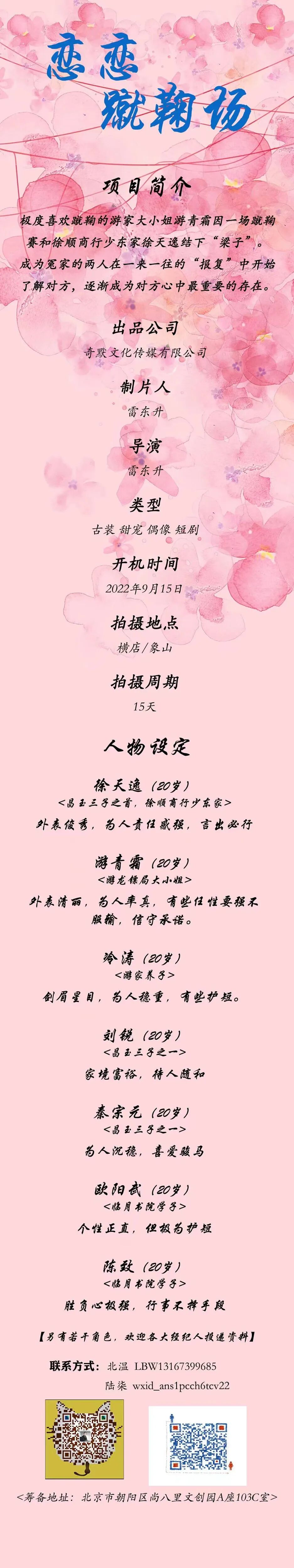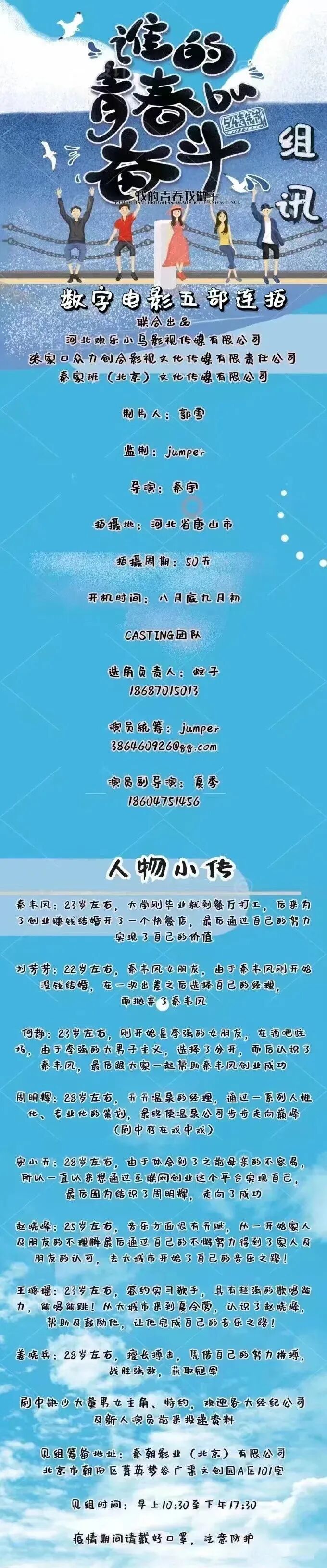本片尚有众多角色未定,欢迎有表演经验的演员老师共同参与、共同创作