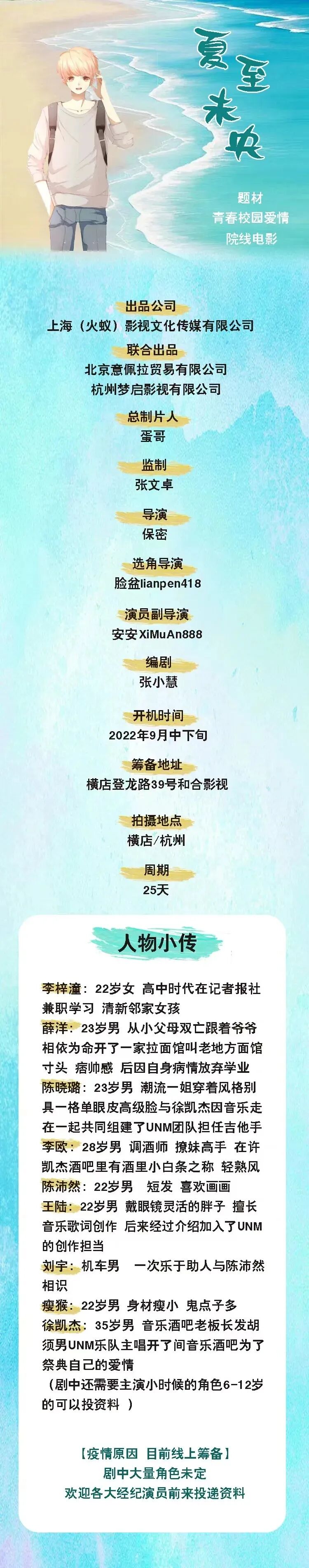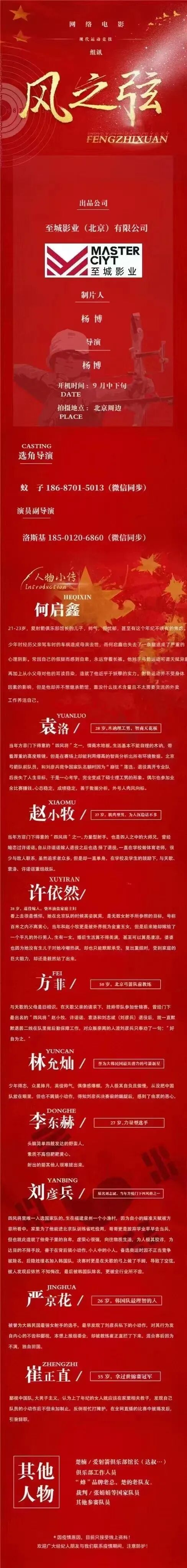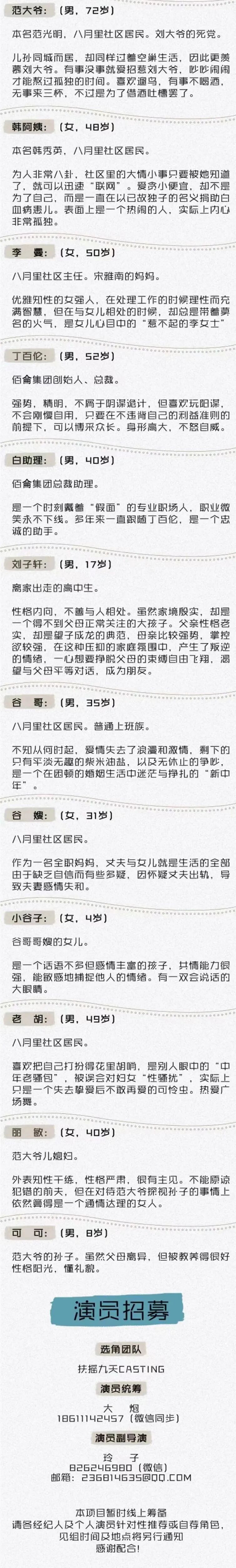 剧中大量角色未定,欢迎各大经纪演员前来投递资料。