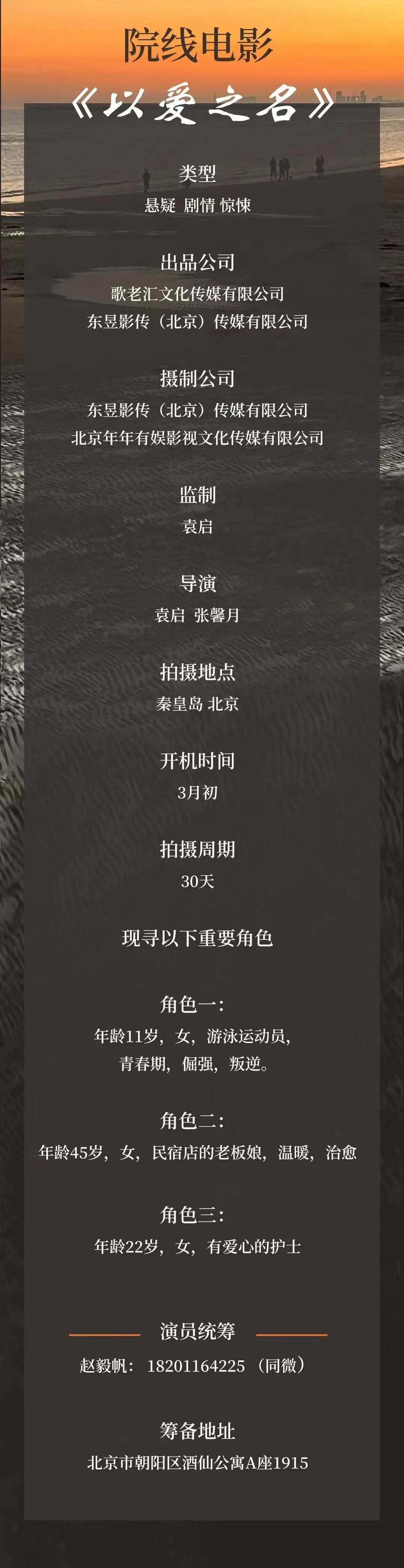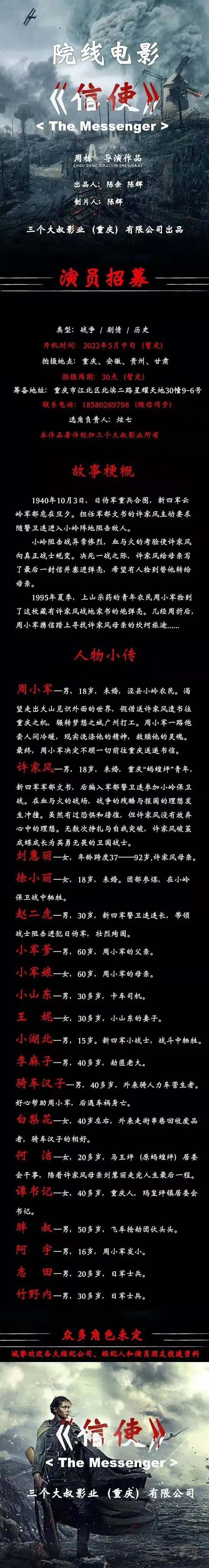 本栏目发布组讯由小编采集与业界共享,组讯如有变化请以实际情况为准。如果遇到剧组收费情况,请谨慎对待并私信官微@戏客Seeker,我们会公示问题组讯并及时处理。谢谢。