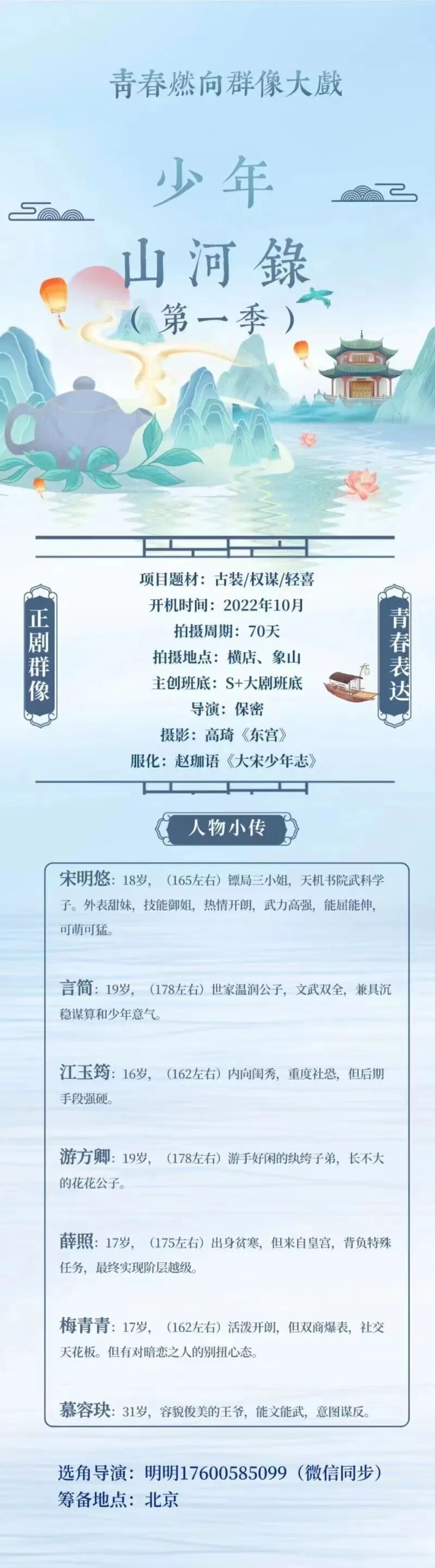 选角导演:明明 17600585099(微信同步)