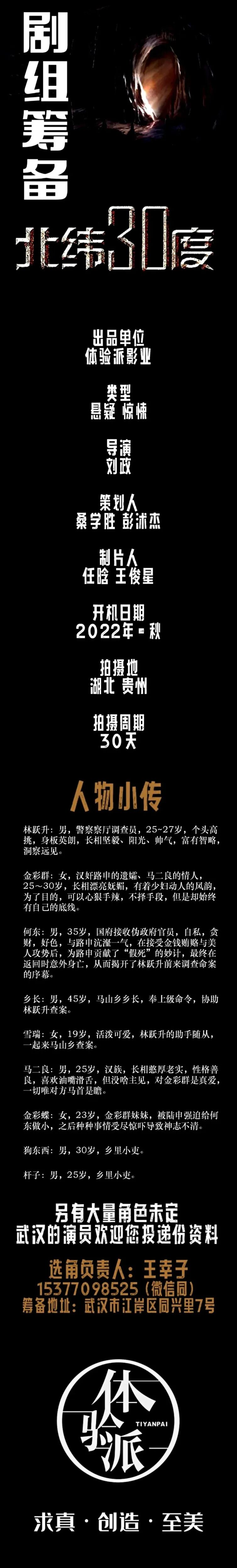 本栏目发布组讯由小编采集与业界共享,组讯如有变化请以实际情况为准。如果遇到剧组收费情况,请谨慎对待并私信官微@戏客Seeker,我们会公示问题组讯并及时处理。谢谢。
