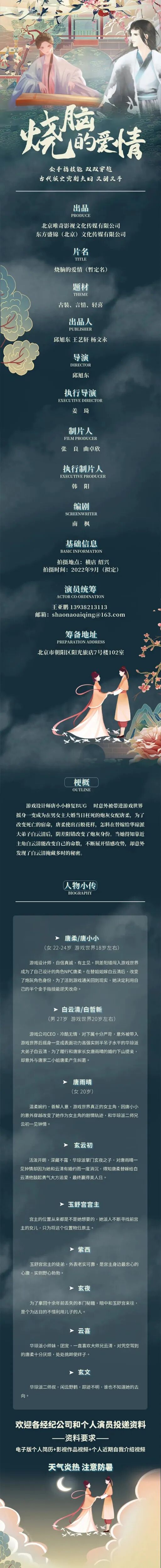 2、古装轻喜剧《烧脑的爱情》(暂定名)