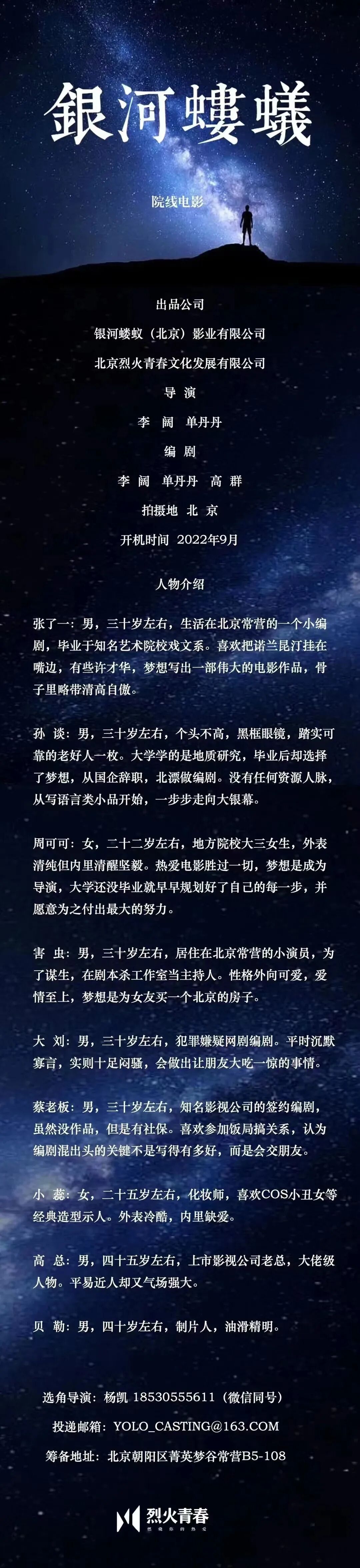 出品公司:银河蝼蚁(北京)影业有限公司、北京烈火青春文化发展有限公司