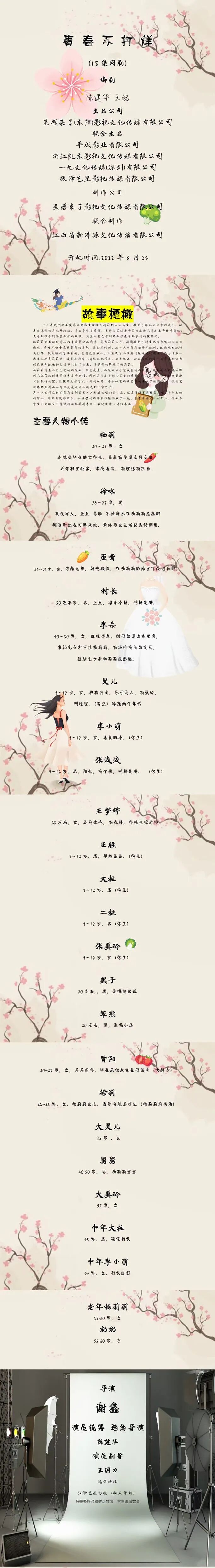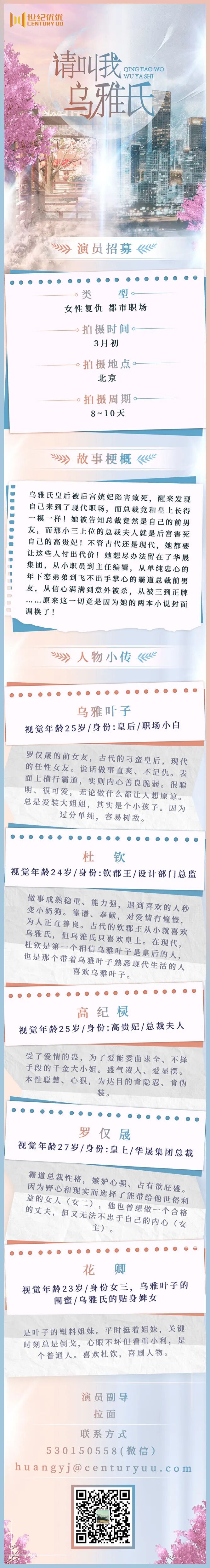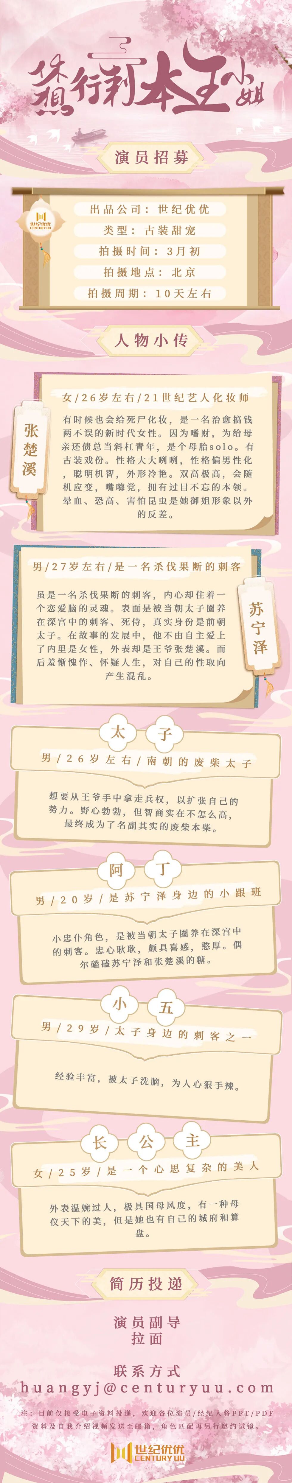 目前仅接受电子资料投递,欢迎各位演员/经纪人将PPT/PDF资料及自我介绍视频发送至邮箱,角色匹配再另行邀约试镜。