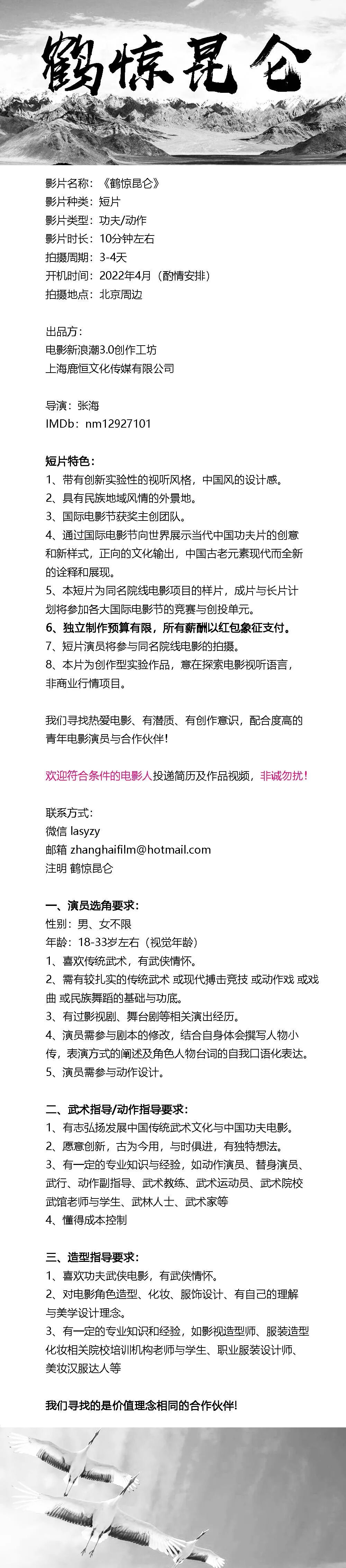 本栏目发布组讯由小编采集与业界共享,组讯如有变化请以实际情况为准。如果遇到剧组收费情况,请谨慎对待并私信官微@戏客Seeker,我们会公示问题组讯并及时处理。谢谢。