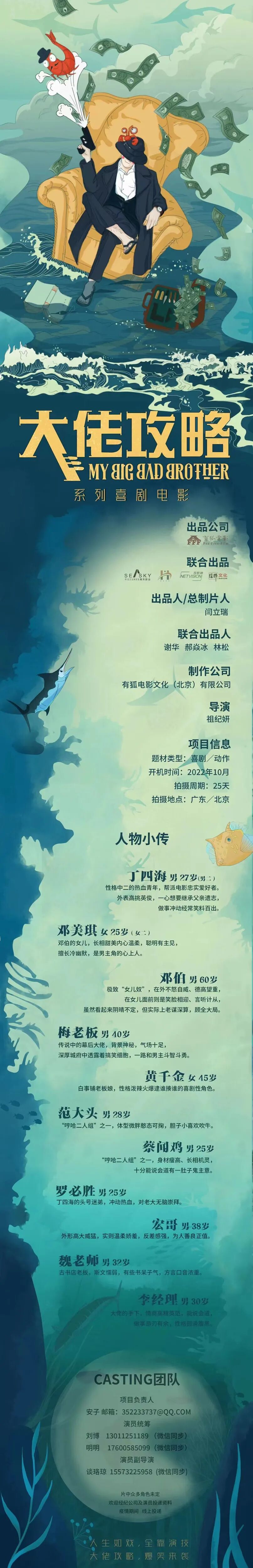 片中众多角色未定,欢迎经纪公司及演员投递资料,疫情期间线上投递