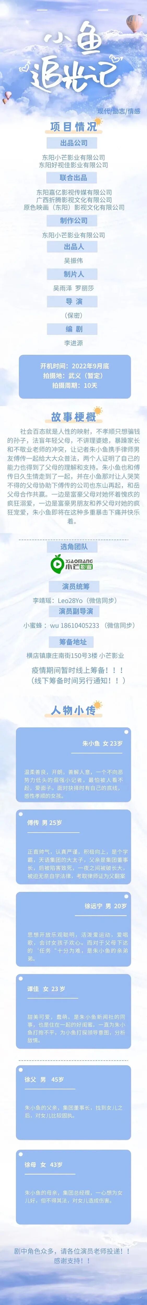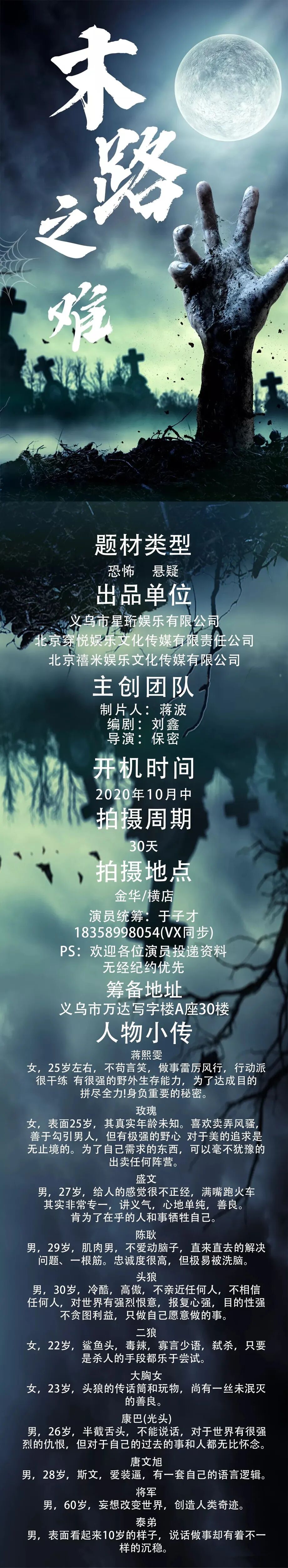 本栏目发布组讯由小编采集与业界共享,组讯如有变化请以实际情况为准。如果遇到剧组收费情况,请谨慎对待并私信官微@戏客Seeker,我们会公示问题组讯并及时处理。谢谢。