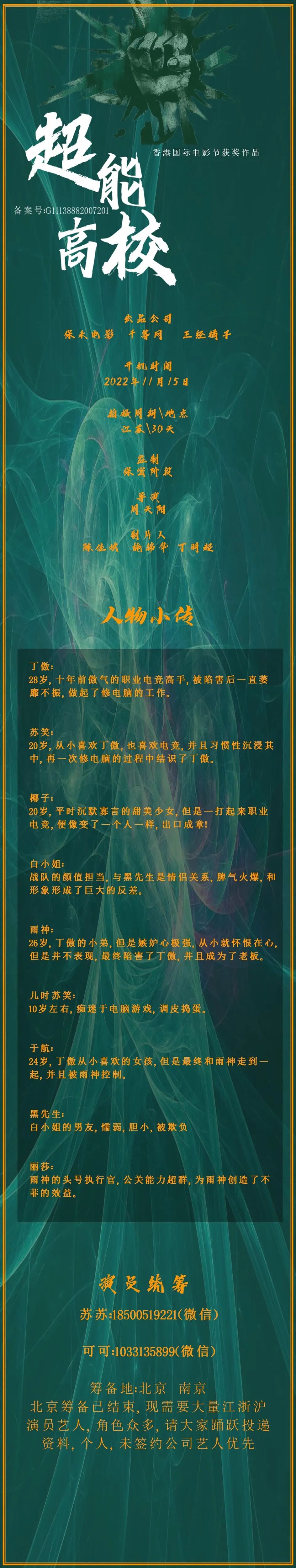 选角导演:朱鹏鹏 15139186777