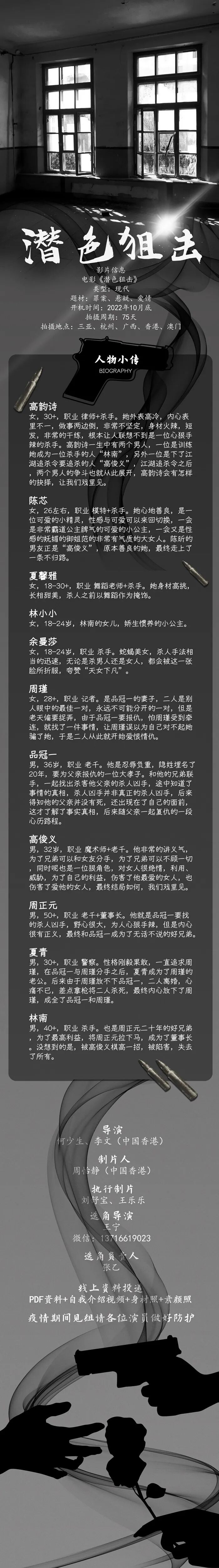 本栏目发布组讯由小编采集与业界共享,组讯如有变化请以实际情况为准。如果遇到剧组收费情况,请谨慎对待并私信官微@戏客Seeker,我们会公示问题组讯并及时处理。谢谢。