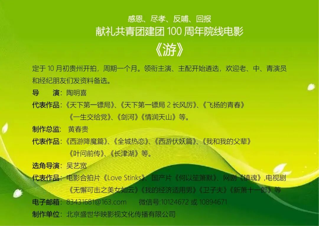 领衔主演、主配开始遴选,欢迎老中青演员和经纪朋友们发资料备选。因微信系统经常自动清理、已给我发微信版资料的请再发电邮一份。