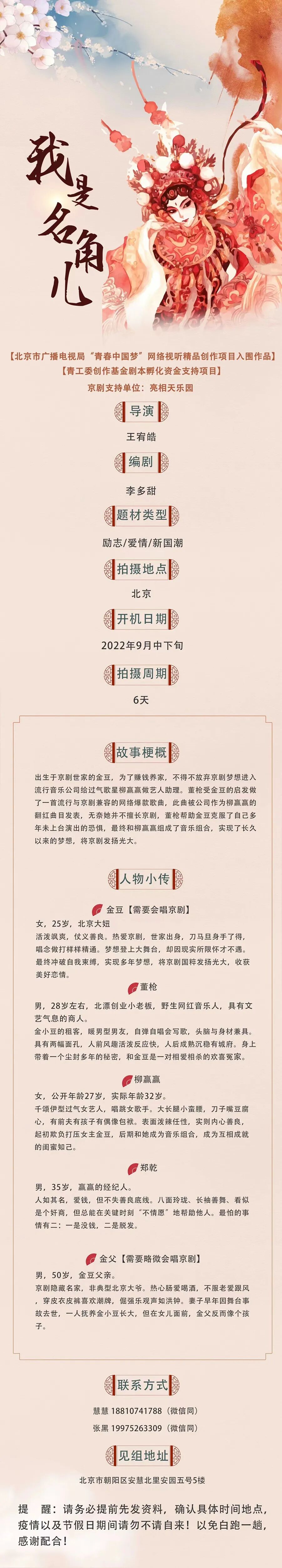 1、邮箱标题/微信中申请注明演员角色+演员姓名:;