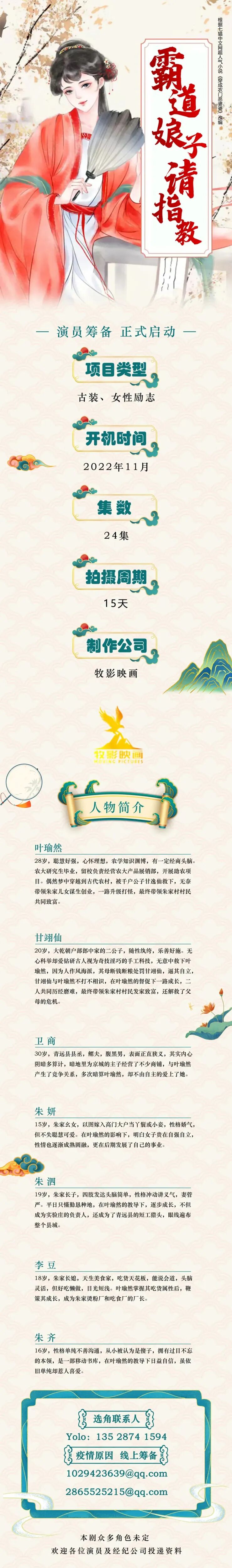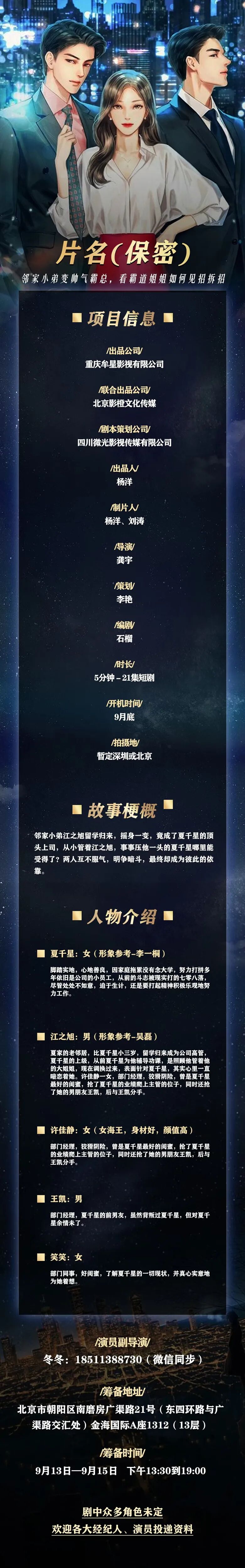 本剧众多角色未定,欢迎各位演员及经纪公司投递资料。