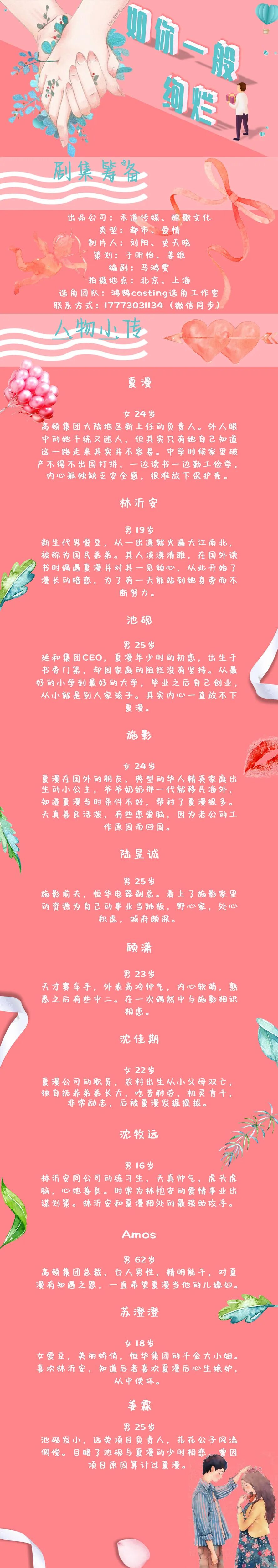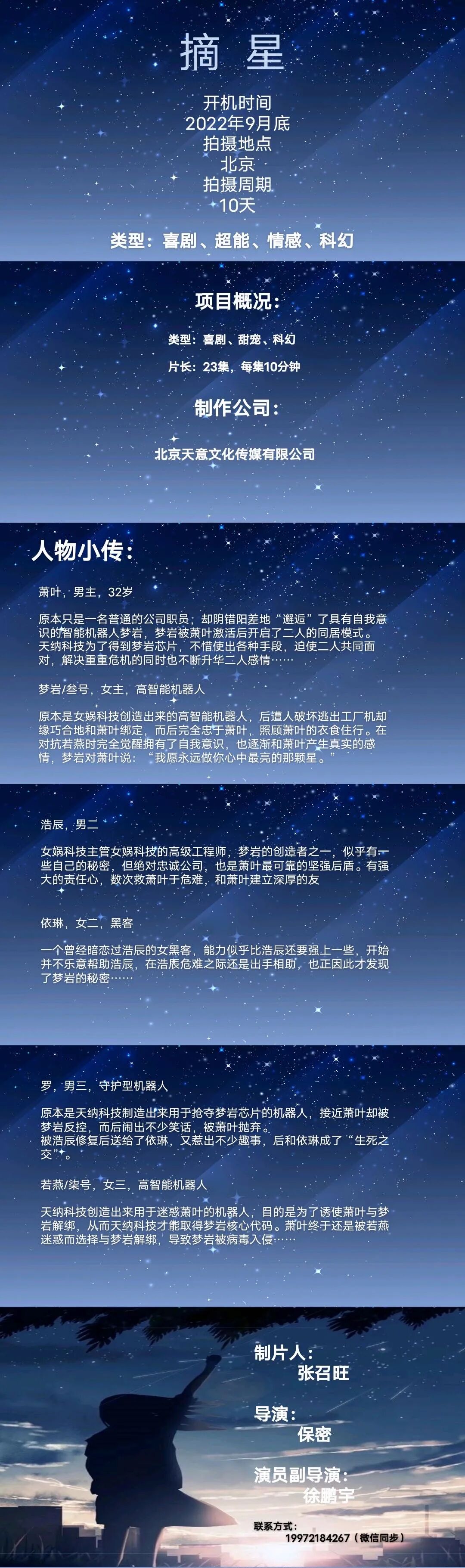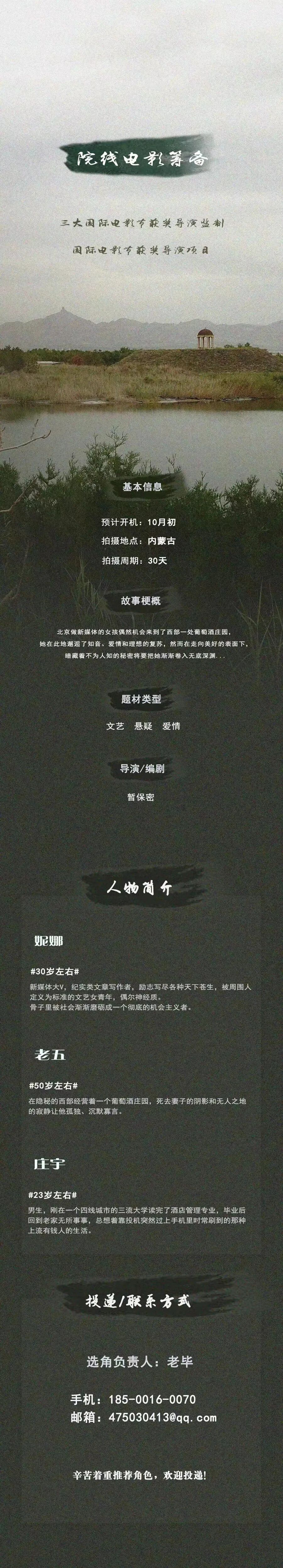 选角负责人:老毕 18500160070