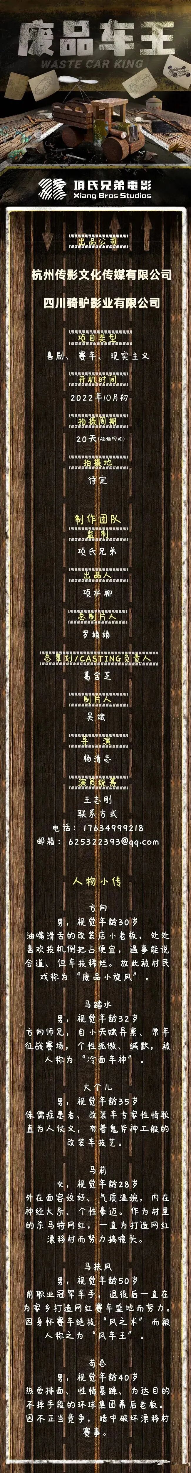 选角导演:巷九 18521085999(同微信)