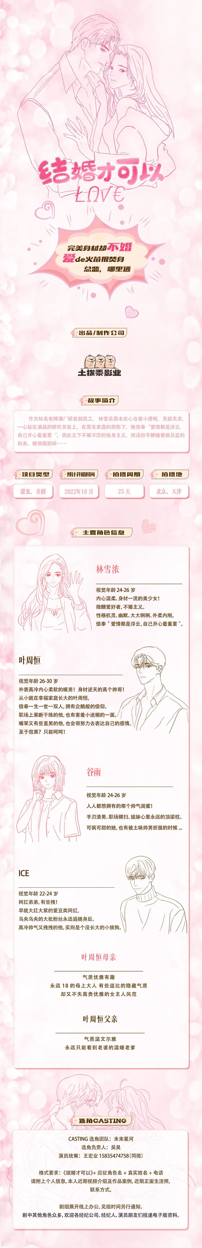 格式要求:《结婚才可以》+应征角色名+真实姓名+电话