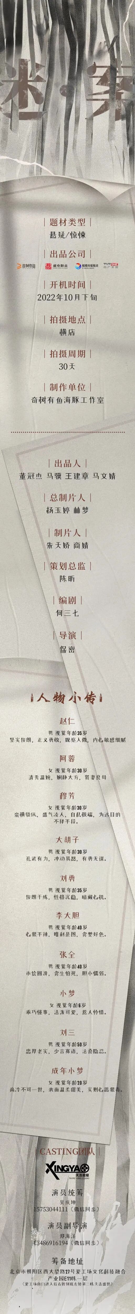 本栏目发布组讯由小编采集与业界共享,组讯如有变化请以实际情况为准。如果遇到剧组收费情况,请谨慎对待并私信官微@戏客Seeker,我们会公示问题组讯并及时处理。谢谢。