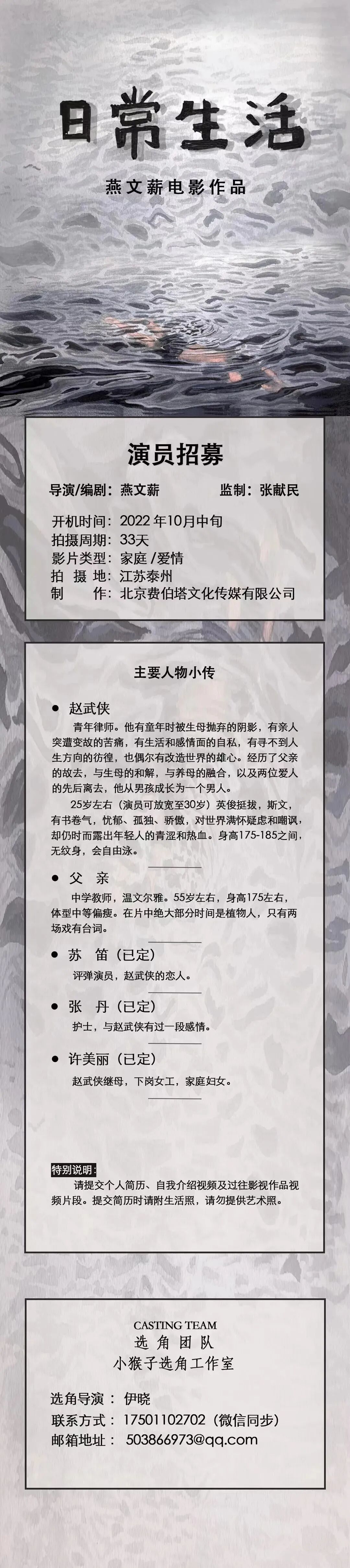 选角导演:伊晓 17501102702(微信同步)