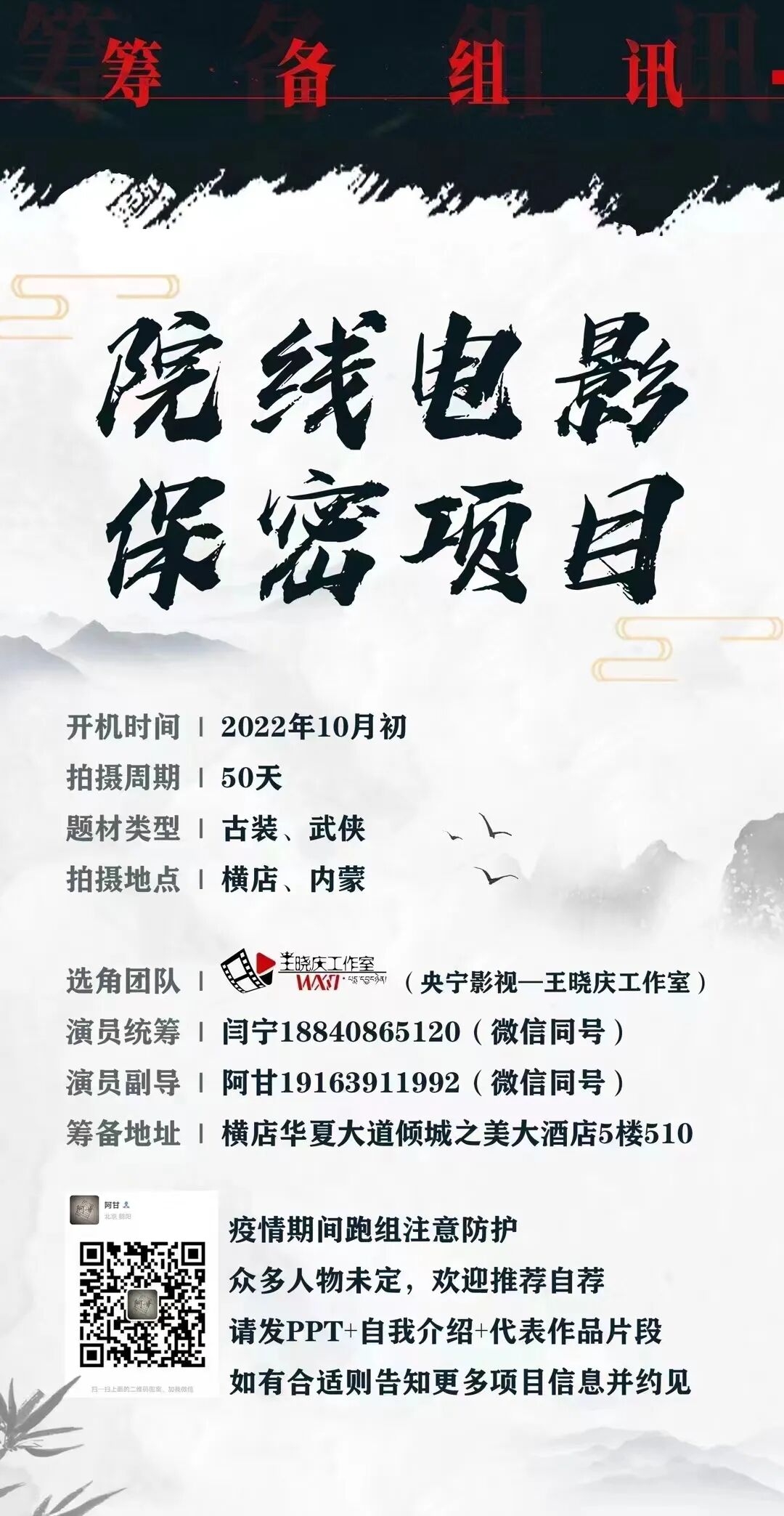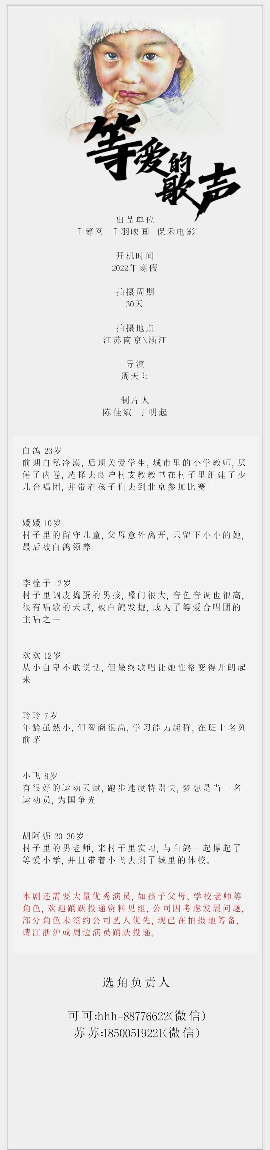 演员统筹:闫宁 18840865120(微信同号)