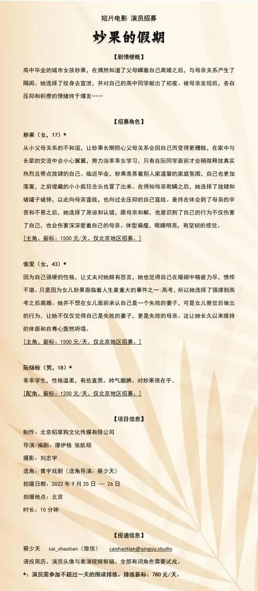 选角导演:苏幕 13088881206(微信同号)