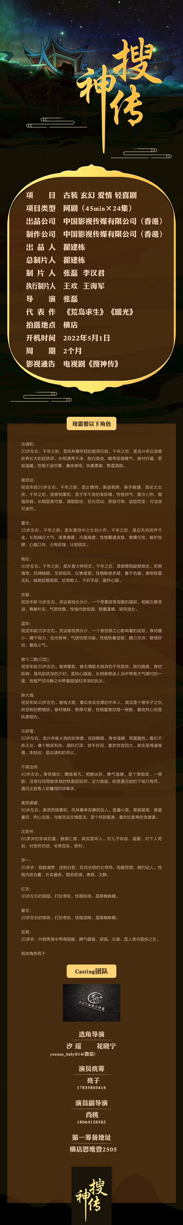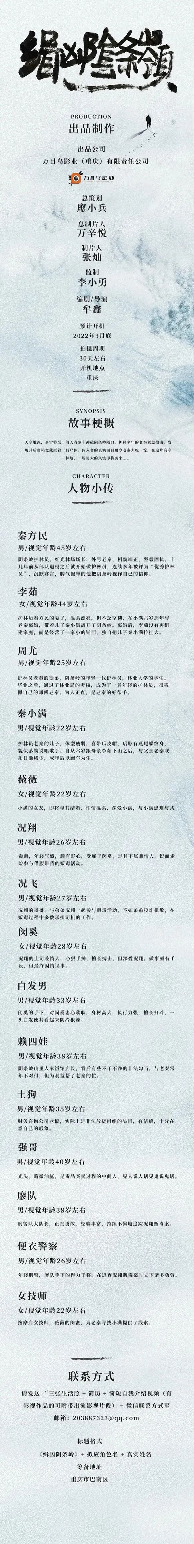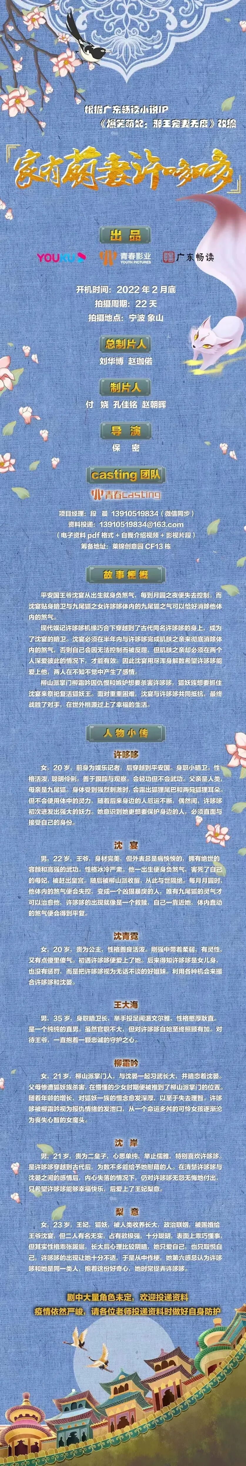 剧中大量角色未定,欢迎投递资料,疫情依然严峻,请各位老师投递资料时做好自身防护。