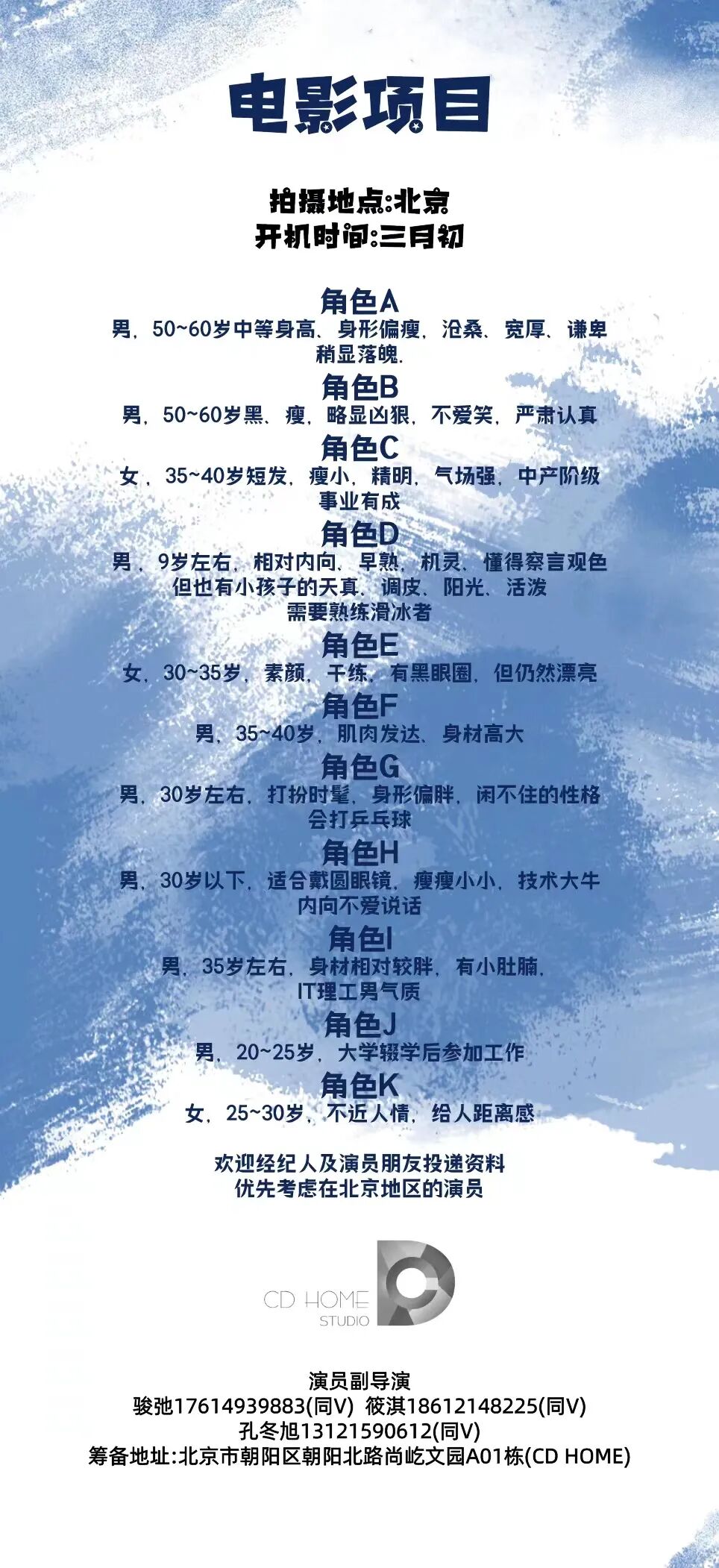 欢迎经纪人及演员朋友投递资料,优先考虑在北京地区的演员。