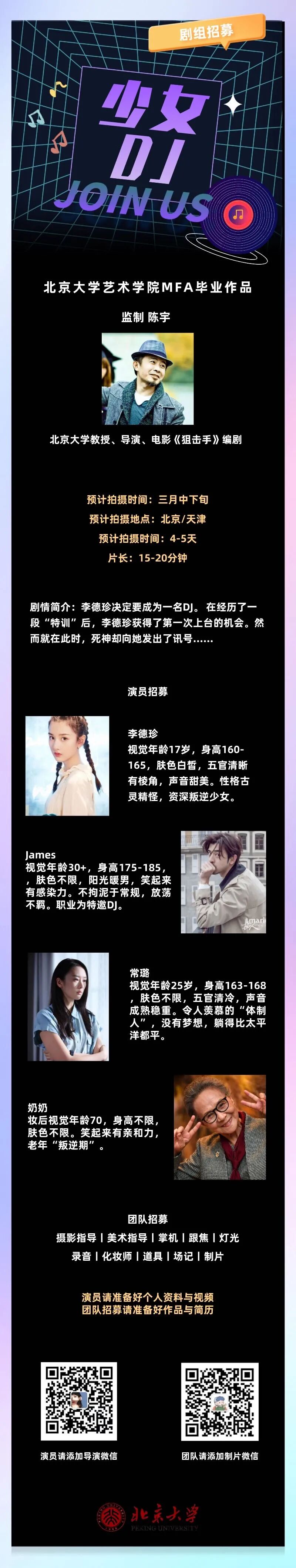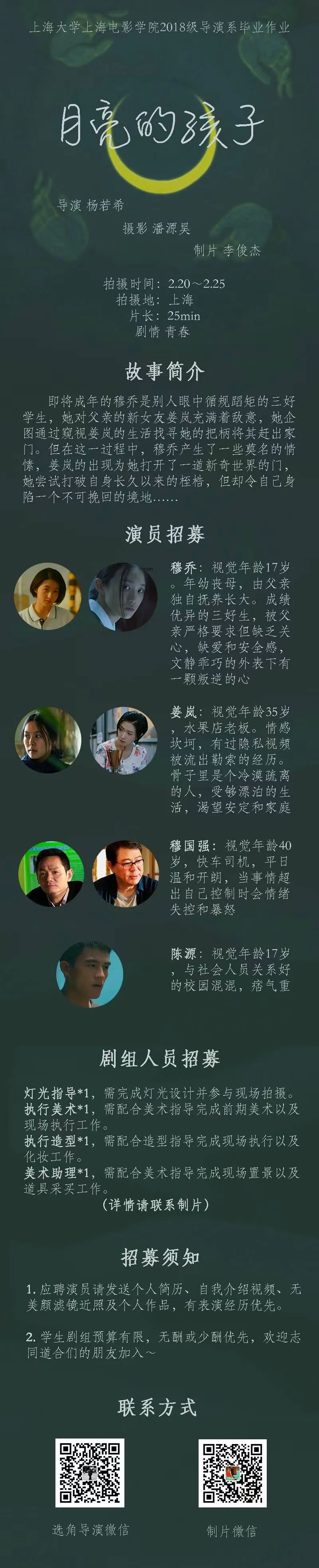 2.学生剧组预算有限,无酬或少酬优先,欢迎志同道合们的朋友加入~