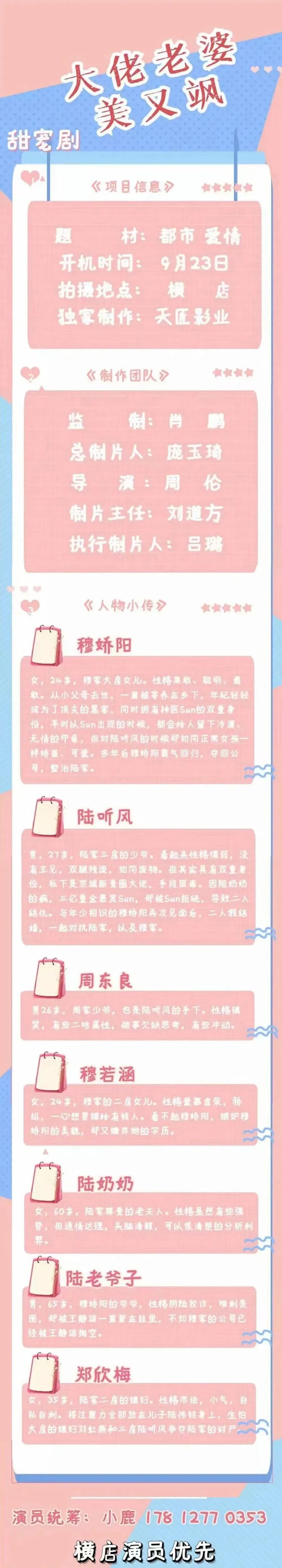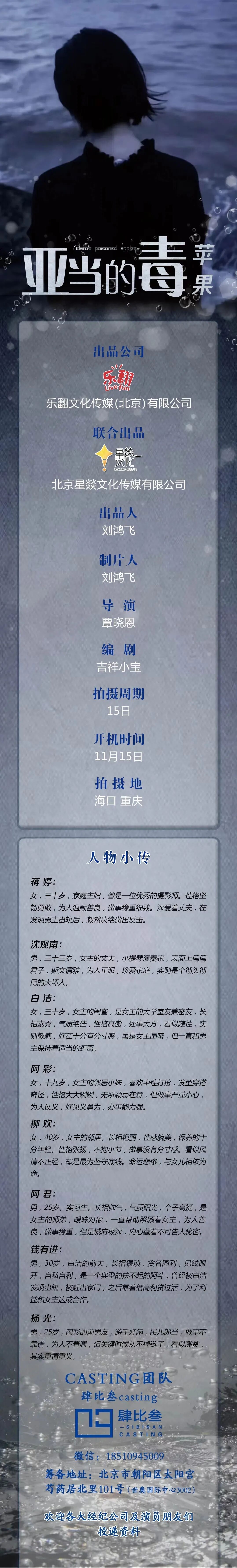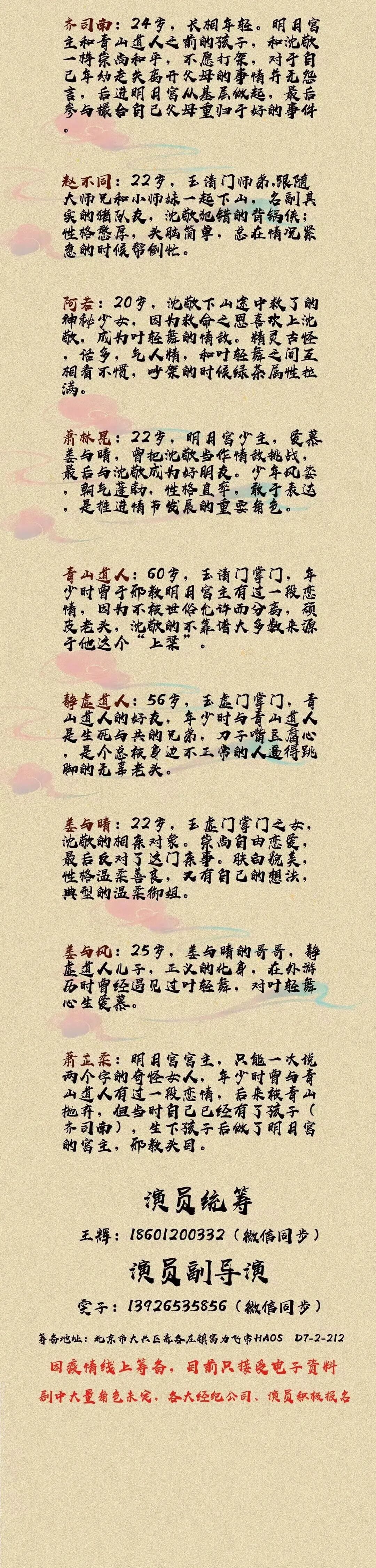 本影片角色众多,欢迎经纪大佬和演员朋友投递资料,感谢大家支持
